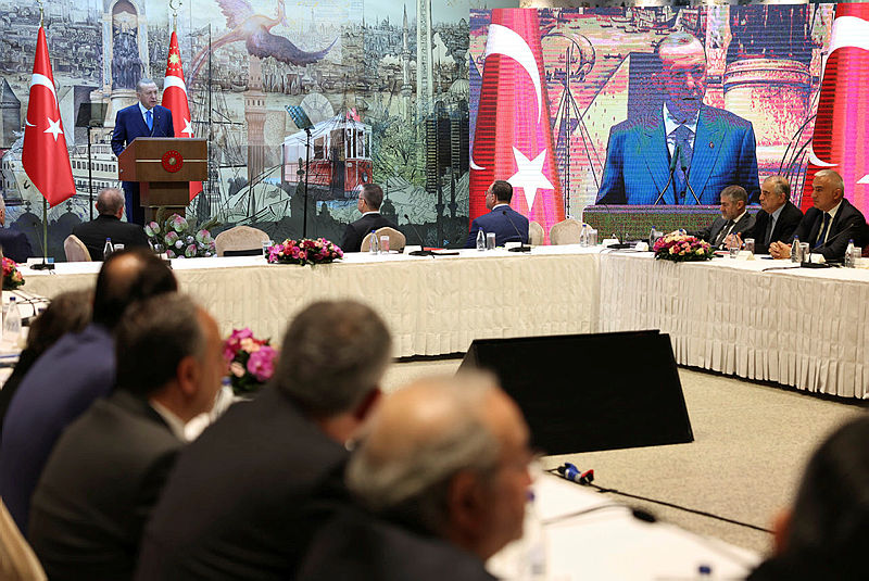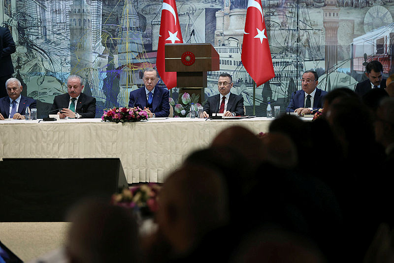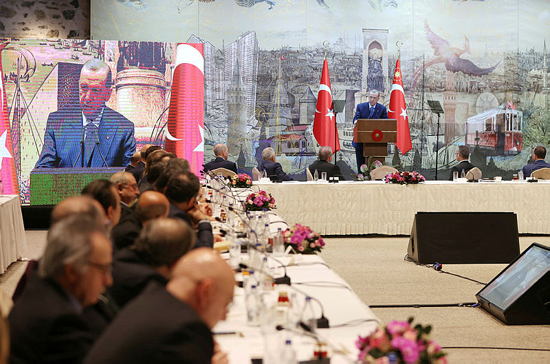 Saat 14.30'da başlayan toplantıda bilim adamları sırayla konuştular. Herkesin konuşmuş olmasına özellikle dikkat edildi. Tekrar tekrar "Fikrini söylemeyen kaldı mı?" diye soruldu. Cumhurbaşkanı Erdoğan, başından sonuna kadar toplantıda hazır bulundu. Toplantıda konuşan bütün bilim adamlarını dikkatle dinleyerek notlar aldı. Ayrıca toplantı kayıt altına alındı.