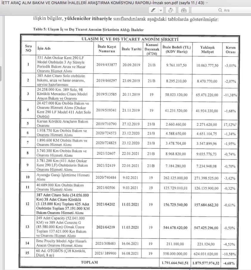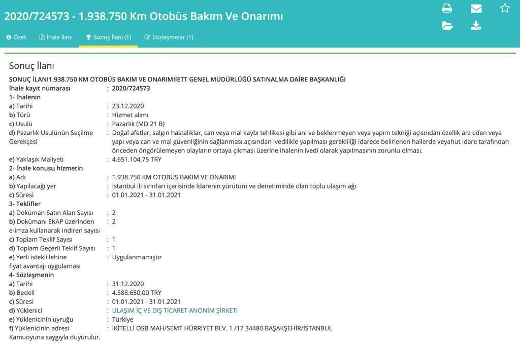 İBB iştiraki İETT tarafından CHP İstanbul Milletvekili Özgür Karabat'ın mali müşaviri olduğu Ulaşım İç ve Dış Ticaret A.Ş'ye verilen otobüslerin 4.1 milyar TL'lik bakım ve onarım ihaleleri Sayıştay 2022 Yılı Denetim Raporuna yansıdı. Böylece SABAH'ın daha önce haberleştirdiği bu rakamlar bir kez daha tescillendi.