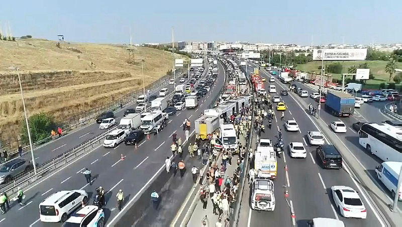 İstanbul'un Küçükçekmece ilçesi Sefaköy mevkiinde önceki gün meydana gelen metrobüs kazasında 22 yaşındaki Ferhat Uçar hayatını kaybetti, 53 kişi de yaralandı. Ölümlü kazanın ardından İstanbul Büyükşehir Belediyesi (İBB) beyaz yol çalışması nedeniyle metrobüs araçlarının D-100 karayoluna giriş yapmak zorunda kaldığı yol ayrımına işaret tabelası koydu.