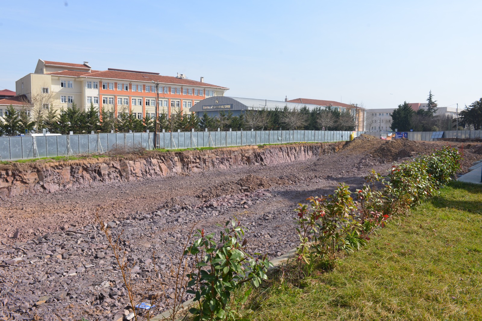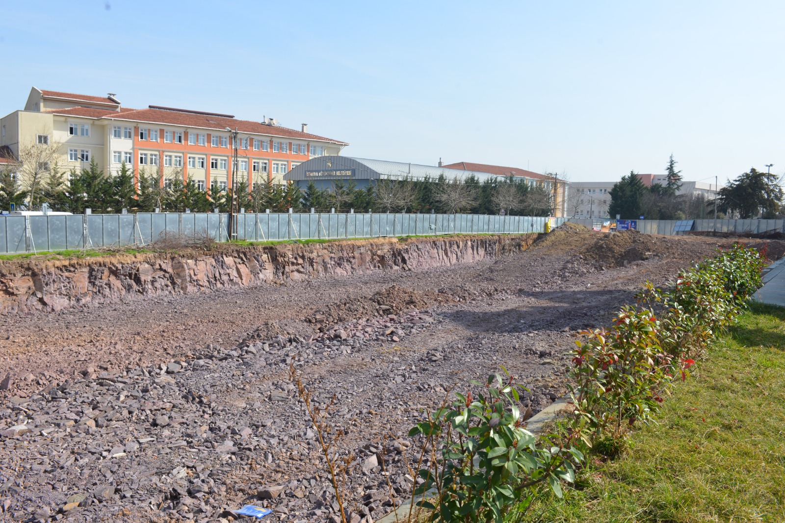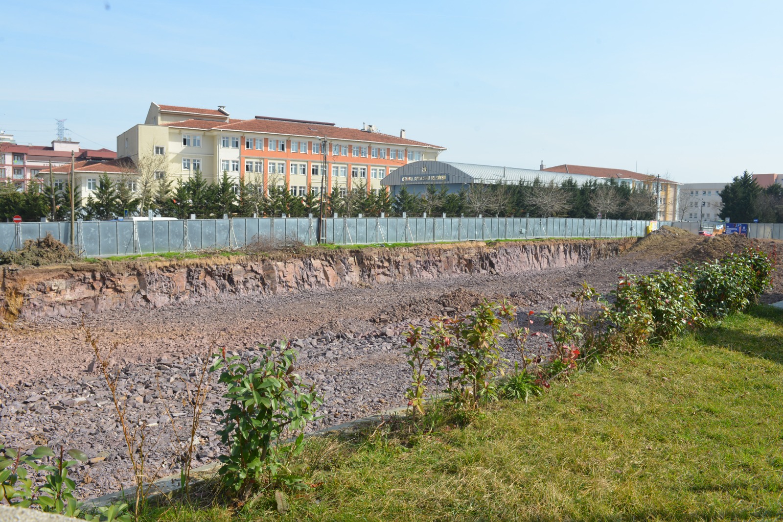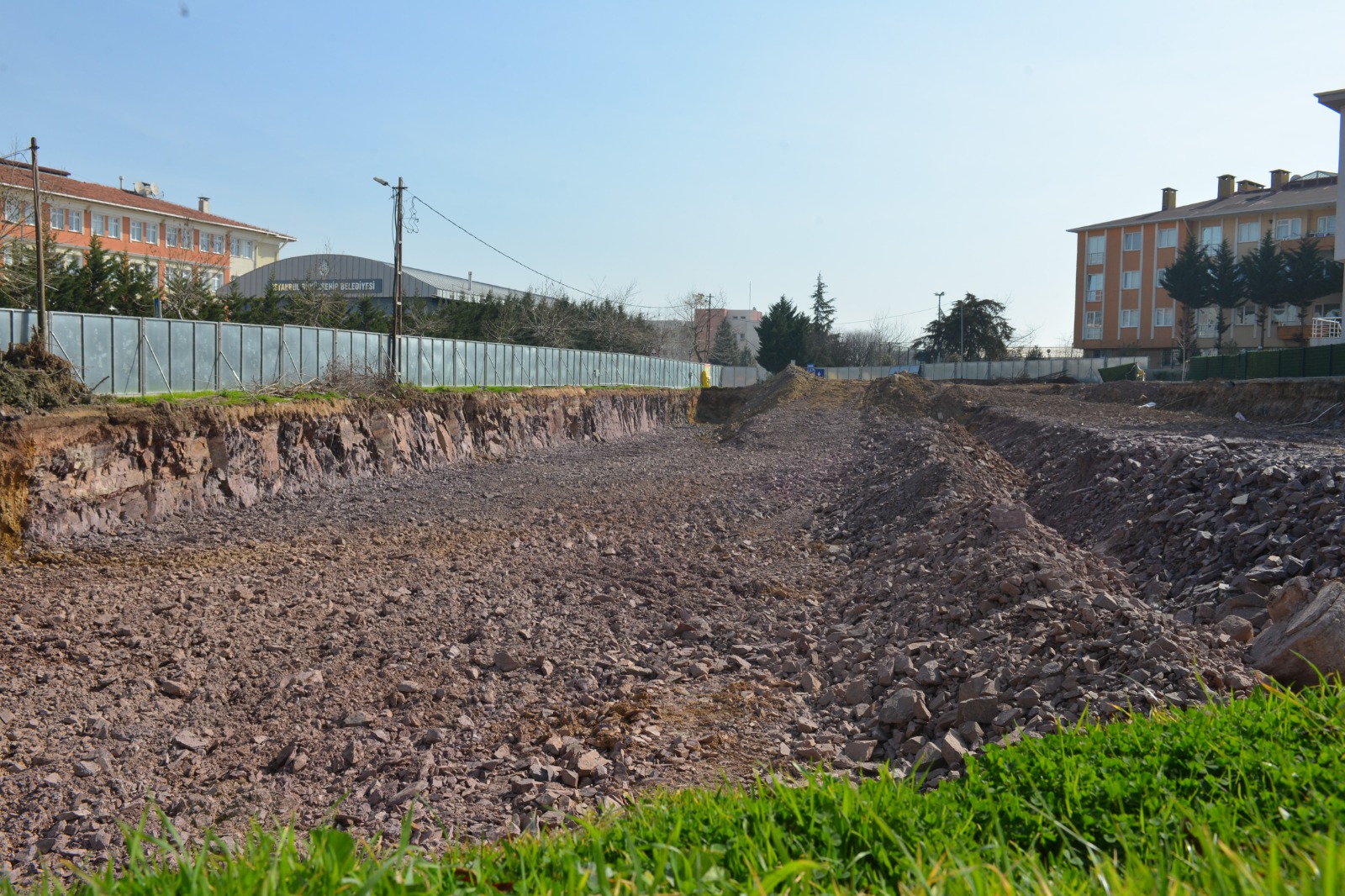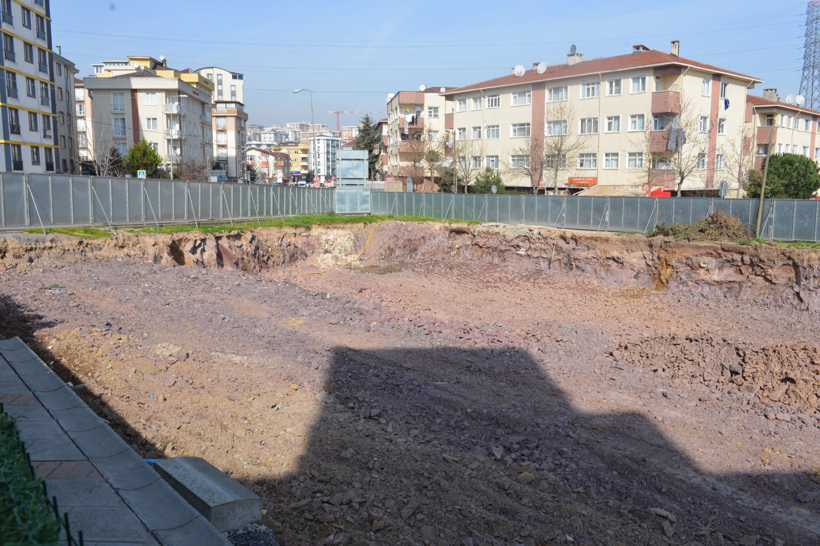 İnşaatın yapılacağı alanın etrafı üzeri İmamoğlu'nun reklamlarının yapıştırıldığı metal levhalarla çevrilirken inşaat alanında toprağın durduğu görüldü.