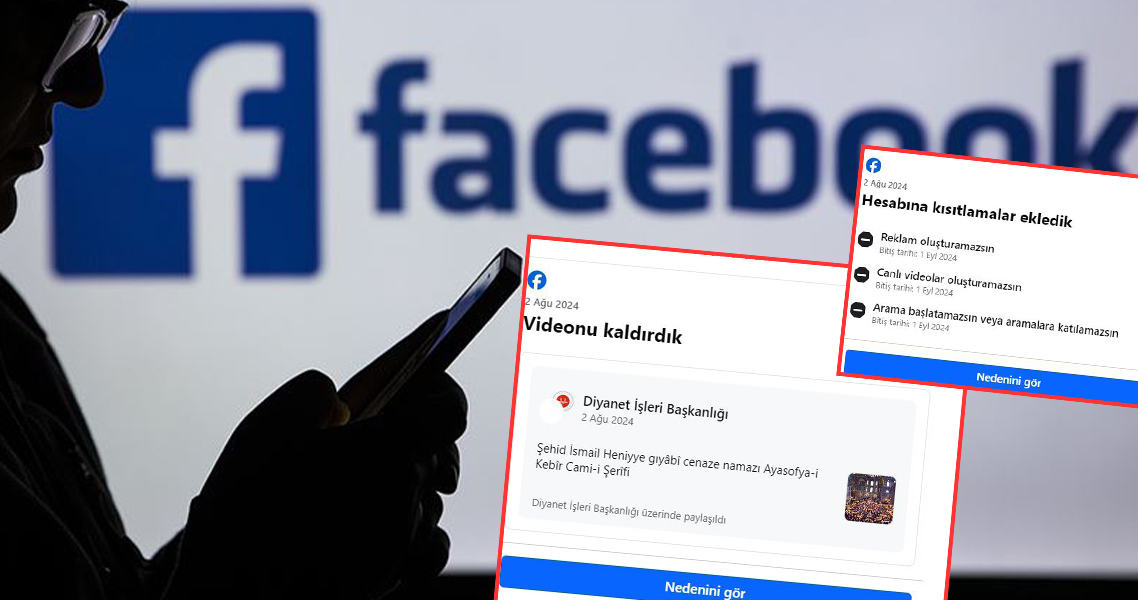 Facebook, Diyanet İşleri Başkanlığı'nın canlı yayınladığı Şehit İsmail Haniye için İstanbul'da kılınan cenaze namazı videosunu kaldırdı ve Diyanet İşleri Başkanlığı hesabına 1 ay yayın yasağı getirdi.