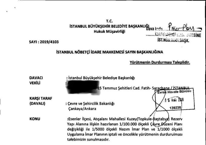 *Esenler'de devam eden 60 bin konutluk Türkiye'nin en büyük kentsel dönüşüm projesine İBB Başkanı Ekrem İmamoğlu'nun davacı sıfatıyla 1 dava, İstanbul Büyükşehir Belediyesi'nin 5 ayrı dava, İBB Meclisi CHP Grup Başkanvekili Ülkü Sakalar'ın 3 dava açtığı öğrenildi. Türk Mühendis ve Mimar Odaları Birliği (TMMOB) Şehir Planlama Odası'nın da; Esenler ilçesindeki riskli binaların TOKİ kanalıyla dönüştürülmesi için yapılan 60 bin konutluk kentsel dönüşüm projesinin durdurulması için 2 dava açtığı bildirildi.