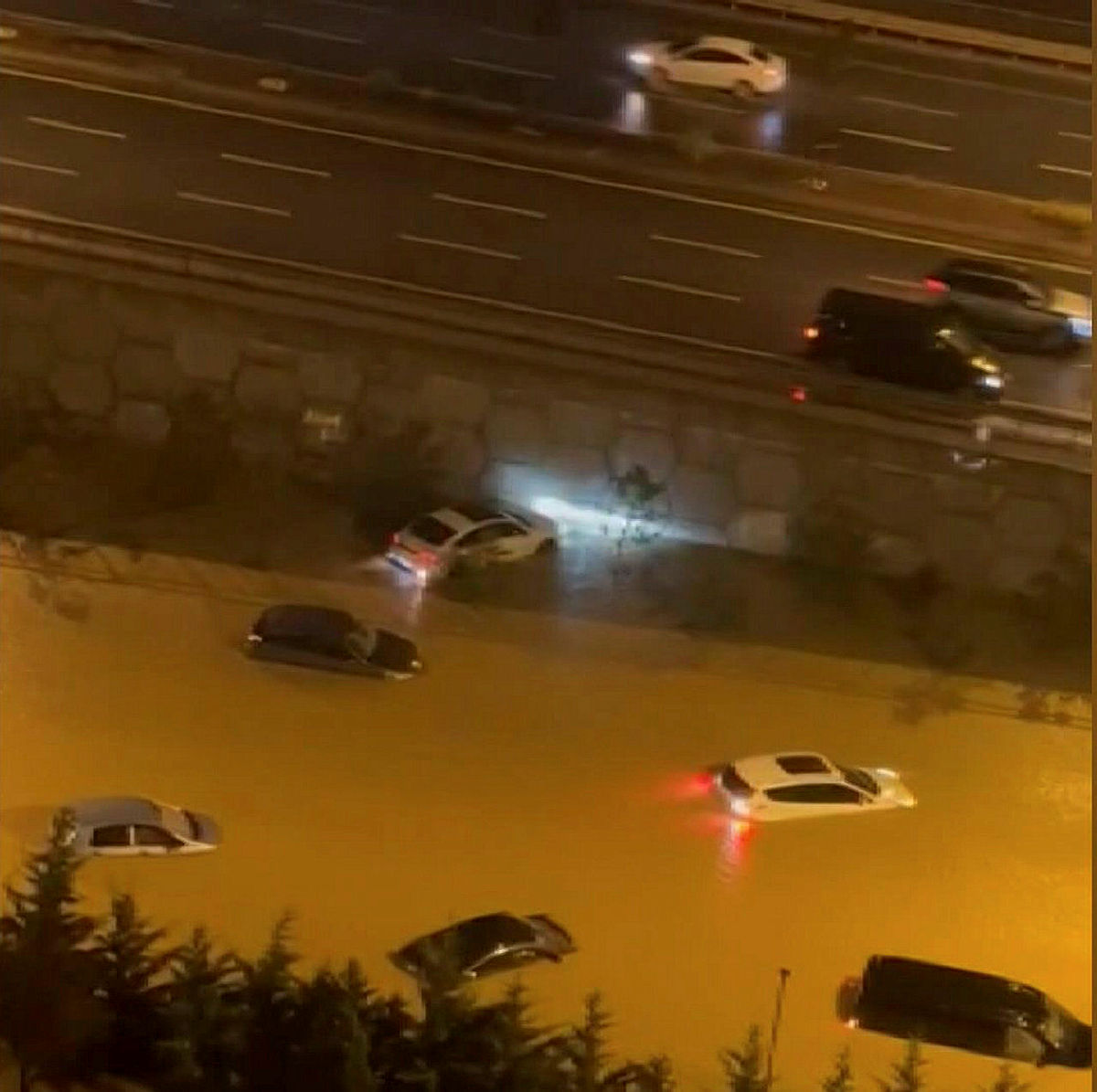 Başakşehir'de sağanak yağış sonrası selde sürüklenen araçlar dükkanlara girdi | Video