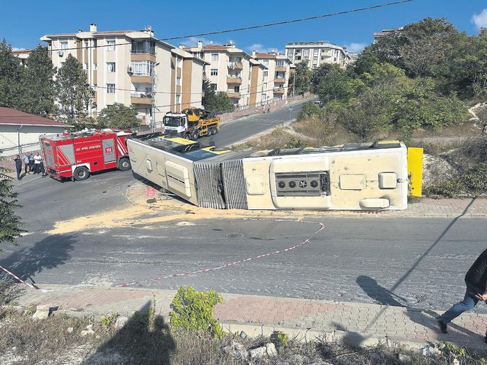 Hızını alamayan otobüs boş araziye doğru kayarak yan yattı. Yolcular otobüs içerisinde mahsur kaldı. İhbar üzerine bölgeye çok sayıda ambulans ve itfaiye aracı gönderildi. Biri çocuk 7 yolcunun yaralandığı kazada otobüsten çıkartılan vatandaşlar çevredeki hastanelere kaldırılırken otobüs yaklaşık 3 saatlik çalışmanın ardından kaldırılarak garaja çekildi. Kazanın ardından açıklama yapan Başakşehir Belediye Başkanı Yasin Kartoğlu, İBB yönetimini eleştirerek şunları söyledi: