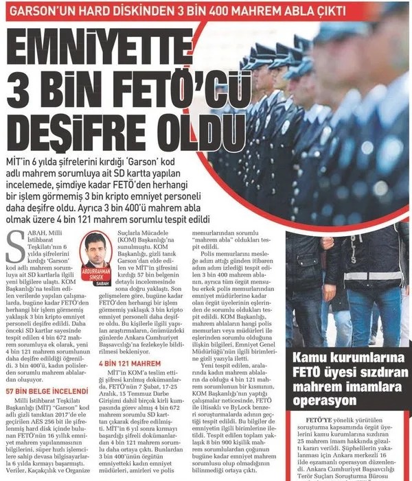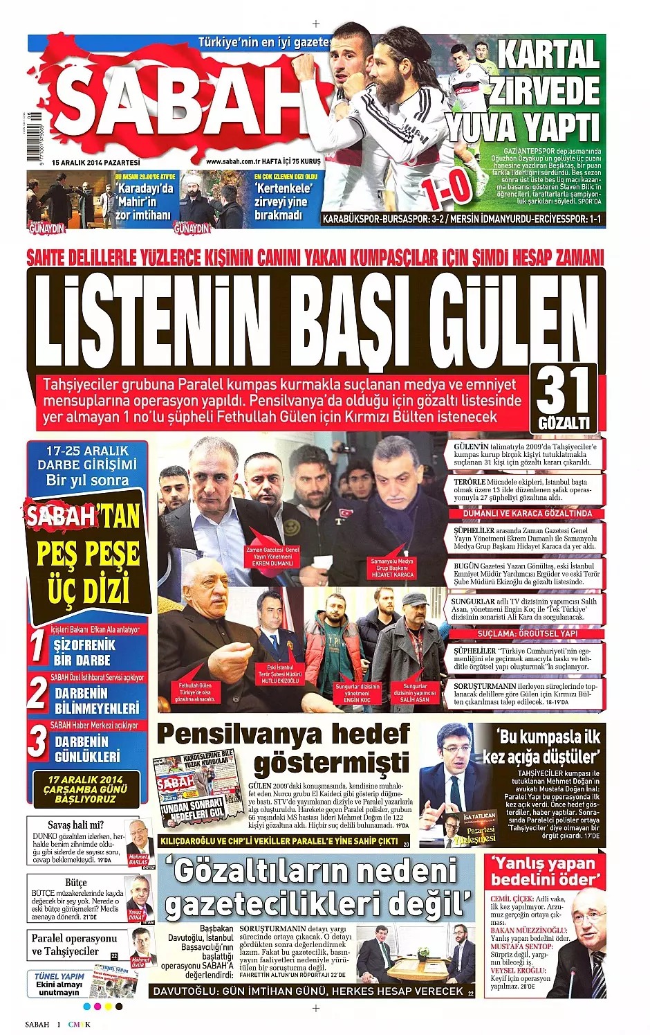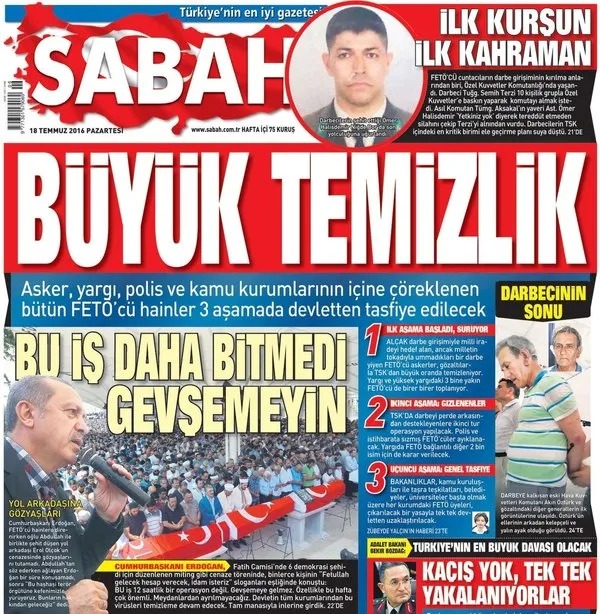 Yıllardır medya mevziisinde gazetecilik nöbeti tutan SABAH, FETÖ'nün her kumpasına set çekmeyi başardı. 17-25 Aralık sürecinden 15 Temmuz darbe girişimine kadar geçen dönemde, FETÖ'nün kumpaslarına karşı kararlı bir mücadele sergileyen SABAH, örgütün kirli oyunlarını bir bir ifşa etti.