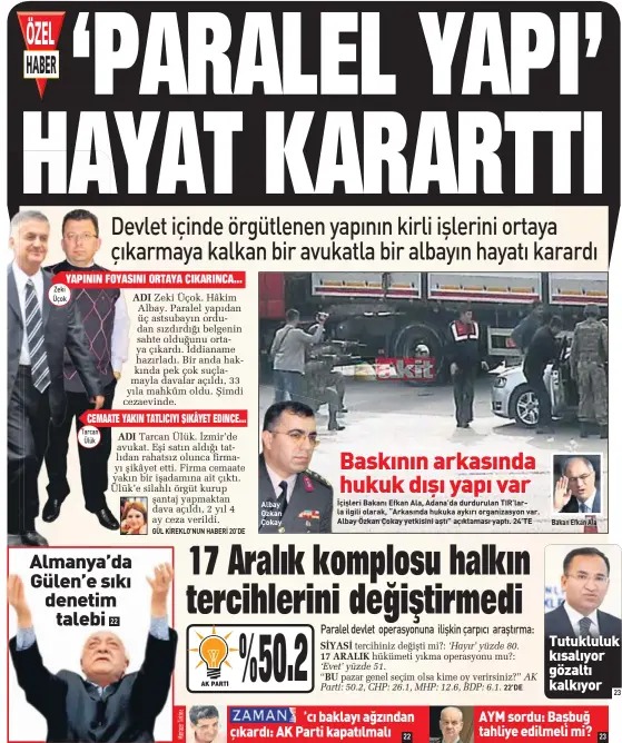 "Paralel Yapılanma" başlığı altında, örgütün yargıdaki etkisini ve hukuksuz operasyonlarını açığa çıkardı. Bu operasyonların asıl amacının Türkiye'yi kaosa sürüklemek olduğu gözler önüne serildi.