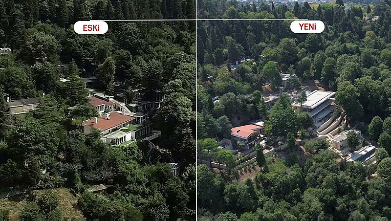 "Yapılan incelemede, Boğaziçi Doğal ve Tarihi Sit Alanında öngörünüm bölgesinde kalan, meri uygulama imar planında, 2'nci grup koru alanı ağaçlandırılacak alanlar lejantında kalan alanda 3 adet 2 katlı ve 4 adet 1 katlı kısmen betonarme, kısmen çelik konstrüksiyon taşıyıcı sistemli yapılar, 1 adet havuz yapısı, 1 adet güçlendirilmiş set yapısı, betonarme istinat duvarları, betonarme merdivenler, bahçe duvarları, bekçi kulübeleri, altyapı çalışmaları, yapı malzemeleri ve atıkları, doğal zeminde beton enjeksiyonu, kazı, dolgu, kademelendirme ve setler yapıldığı, doğal zemin ve bitki örtüsüne fiziksel müdahalede bulunularak tahribat yapıldığı tespit edilmiştir."