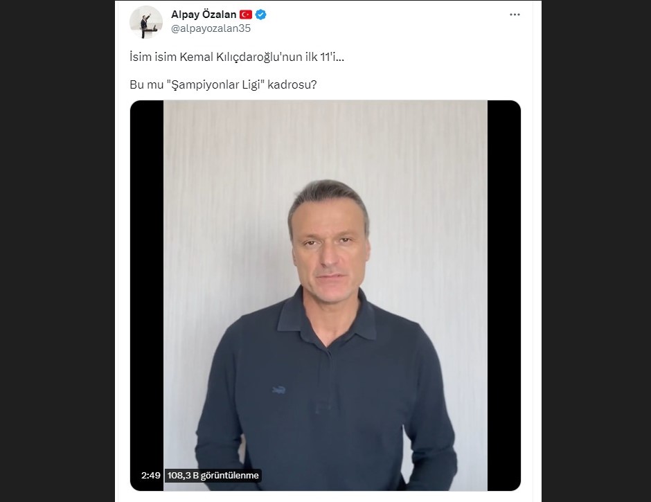 Özalan, sosyal medyadaki açıklamasında "Bakın, eski bir futbolcu olarak söylüyorum. Bu kadro değil şampiyonlar liginde oynamak amatör kümede bile sonuncu olur. Çünkü bu kadro dünyanın en berbat kadrosu!" ifadelerini de kullandı. İşte Alpay Özalan'dan Kılıçdaroğlu'na şampiyonlar ligi kadrosu göndermesi ve ilk 11...