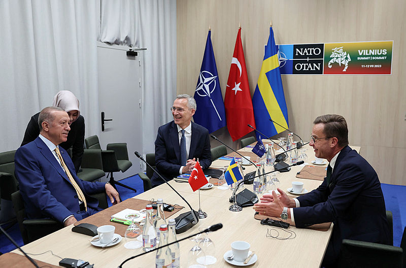 Litvanya'nın başkenti Vilnius'ta gerçekleştirilen NATO Liderler Zirvesi'nde gözler yine Başkan Recep Tayyip Erdoğan'ın üzerindeydi. Önceki gün Vilnius'ta Başkan Recep Tayyip Erdoğan'ın NATO Genel Sekreteri Jens Stoltenberg ve İsveç Başbakanı Ulf Kristersson ile gerçekleştirdiği toplantı zirveye damgasını vurdu. Erdoğan toplantıyı, "Maç devam ediyor, skor henüz 0-0. İlerleyen dakikaları görmemiz lazım" sözleriyle değerlendirdi.