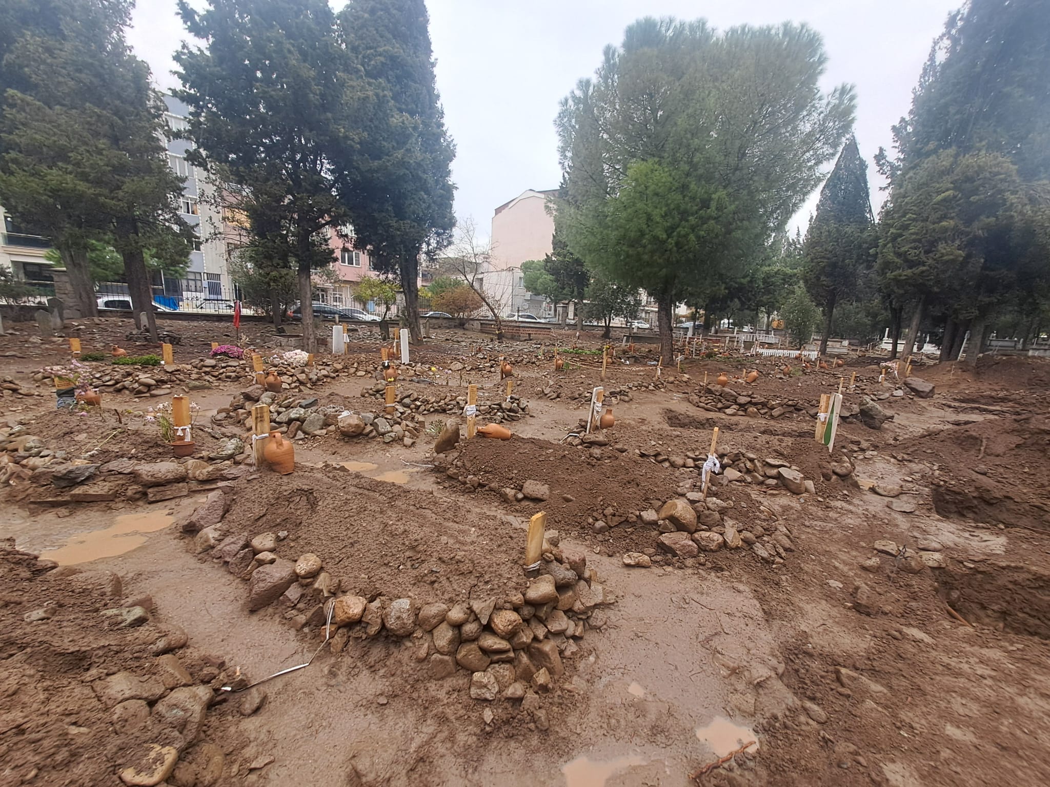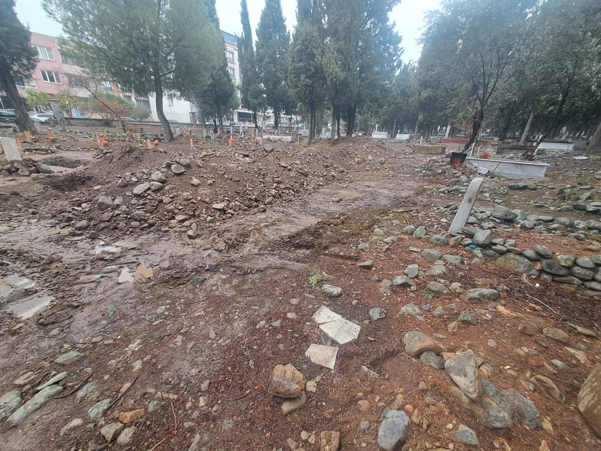 GÖMÜ YERİ AÇMAK İÇİN İŞ MAKİNALARI İLE MEZARLARIN ÜZERİNDEN GEÇMİŞLER