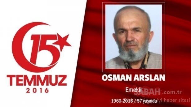 45 yaşındaki Metin Arslan, ekmek parasını kazanmak için ıstanbul'a gelmişti. inşaat işçisiydi. Önce Boğaziçi Köprüsü'ne gitti, ardından İBB binasına... 15 Temmuz gecesi, hain darbecilerin hedef aldığı yerlerden biri de istanbul Büyükşehir Belediyesi'ydi. Onlarca darbeci, belediyeyi işgal edince Metin Arslan, engel olmak istedi. Saraçhane'deki İBB binaının önüne geldiğinde işgalci darbeciler, ateş açtı. 44 yaşındaki inşaat işçisi Metin Arslan, Karabük'te toprağa verildi. Baba Zeki Arslan, Türk bayrağına sarılı oğlunun tabutu başında taziyeleri kabul etti. Kılınan cenaze namazının ardından Arslan'ın cenazesi Özlebeli Mezarlığı'nda defnedildi.