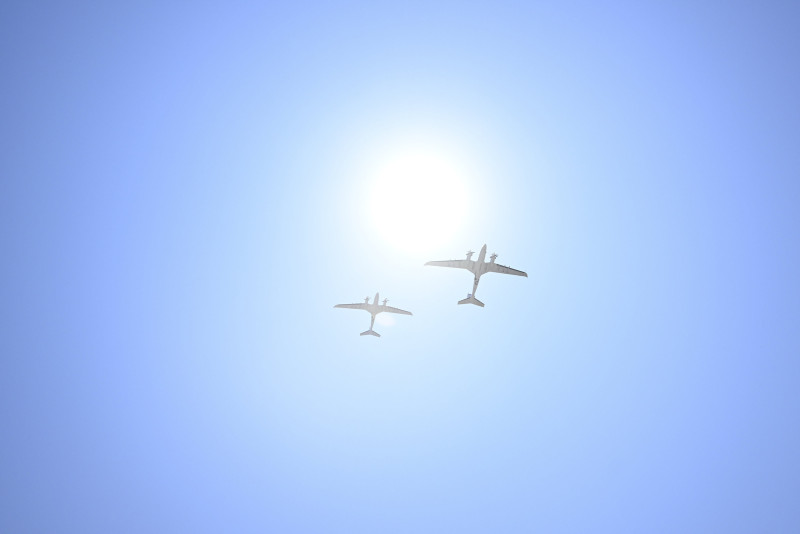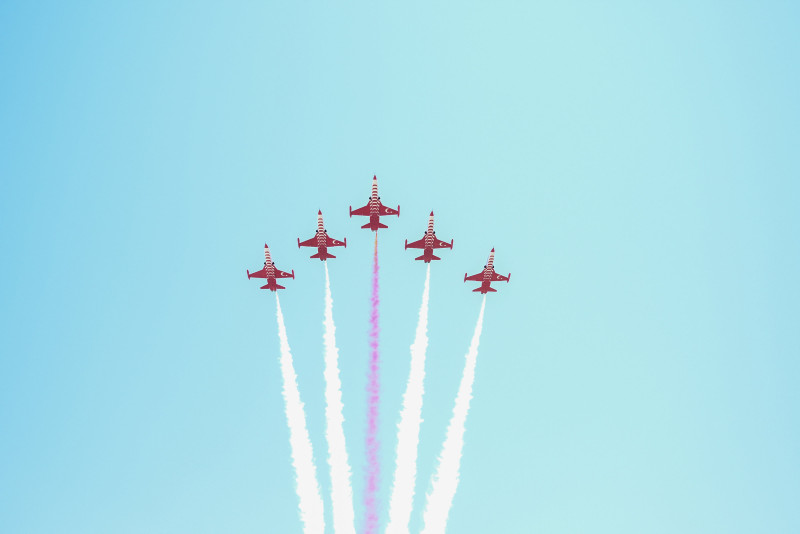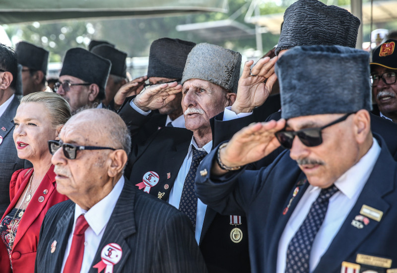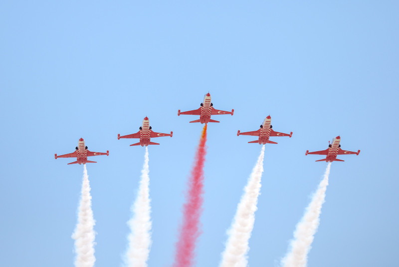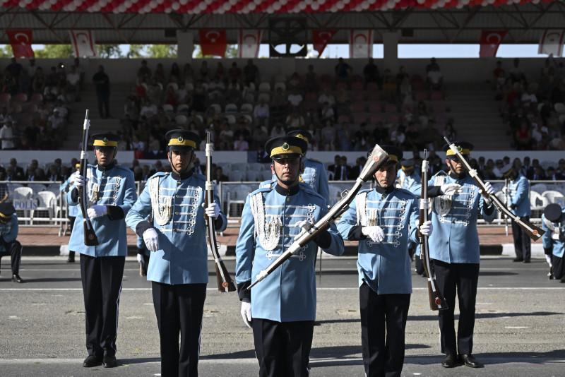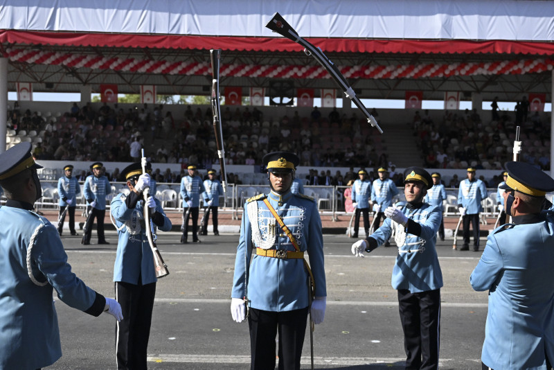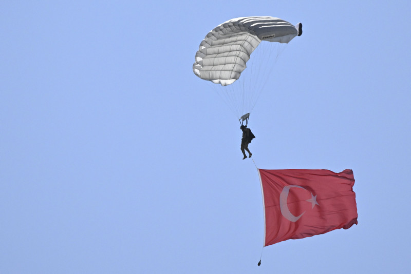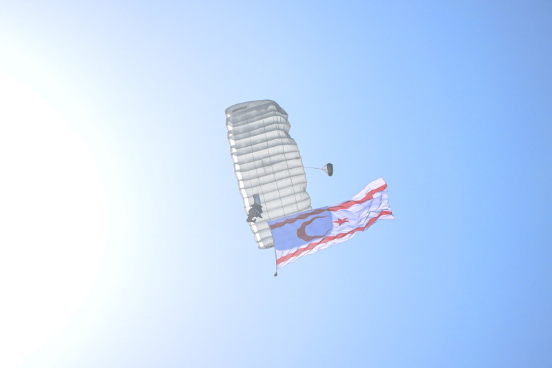 Kıbrıs Barış Harekatı'na katılan paraşütçü komandoları temsilen paraşütle atlarken, Bayraktar İHA ve helikopterler tören alanı üzerinde uçuş gerçekleştirdi. Tören alanı üzerinden uçan Türk Yıldızları Akrobasi Timi katılımcıları selamladı.