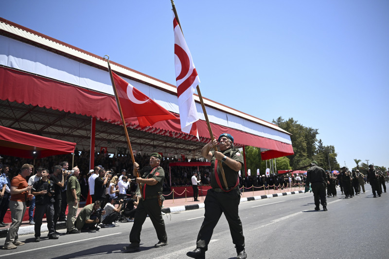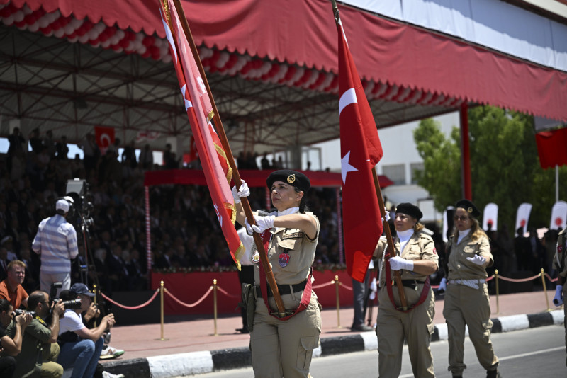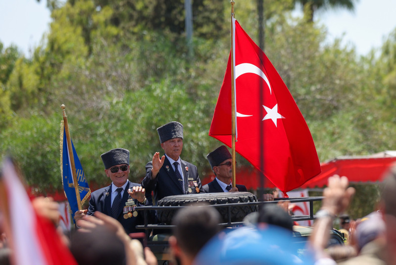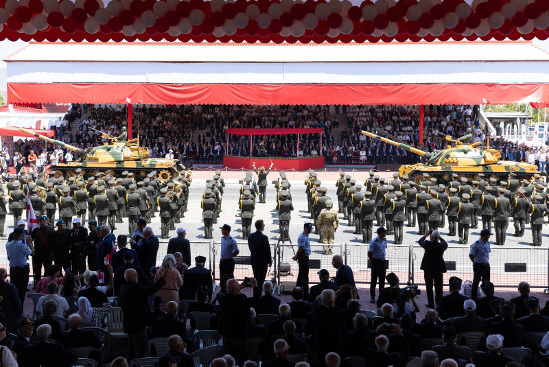 Kıbrıs Barış Harekatı'nın 50. yıl dönümü kapsamında Dr. Fazıl Küçük Bulvarı'nda düzenlenen resmi geçit töreninde Türk bayrağı ile KKTC bayrağı yan yana göndere çekildi. Törene katılan Başkan Recep Tayyip Erdoğan ile KKTC Cumhurbaşkanı Ersin Tatar, birlik ve beraberlik mesajları verdi.