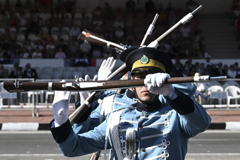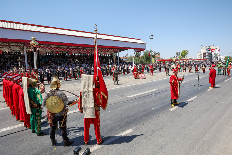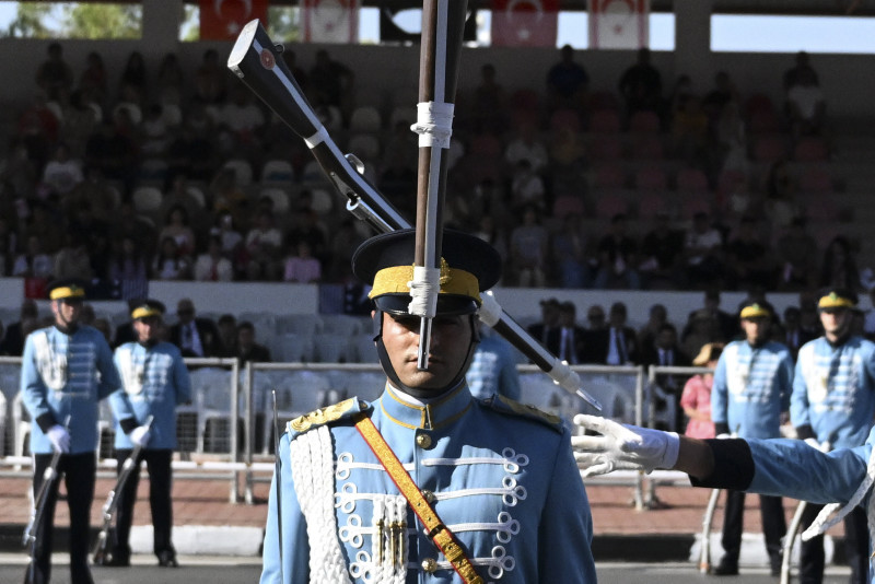 Mehter takımının konser verdiği törende, Türkiye Cumhurbaşkanlığı Muhafız Alayı, tüfekli grup gösterisi sırasında Cumhurbaşkanlığı forsu ve tarihte yer alan Türk devletlerini simgeledi.