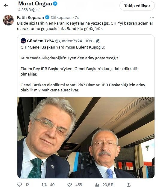 Kılıçdaroğlu cephesinden Murat Ongun’a sert tepki Siyasete bu kadar meraklıysa…