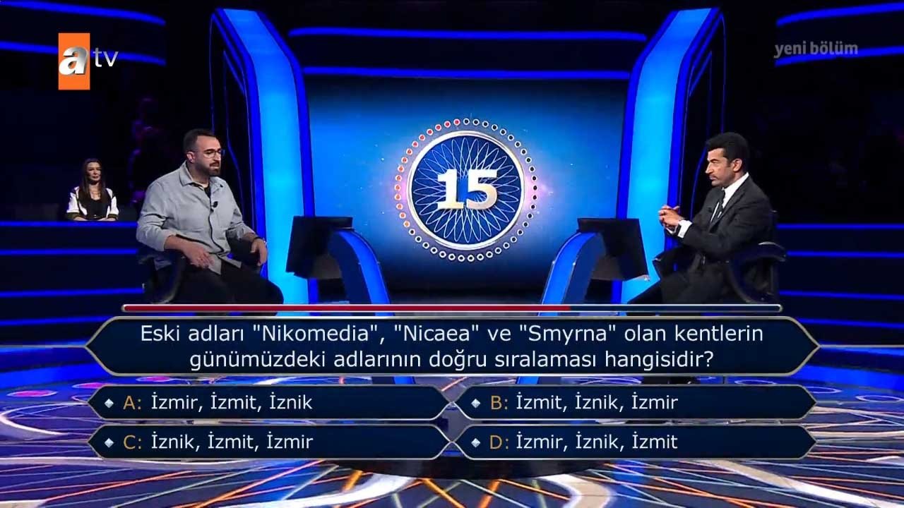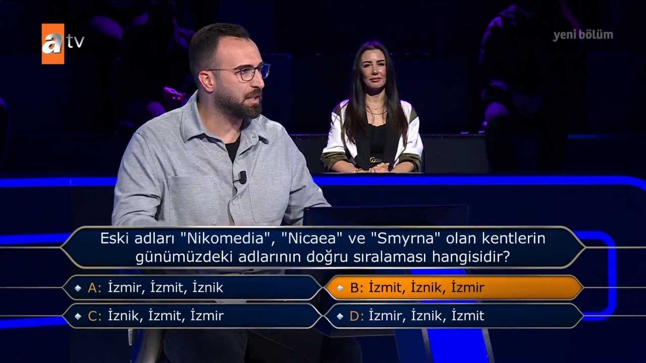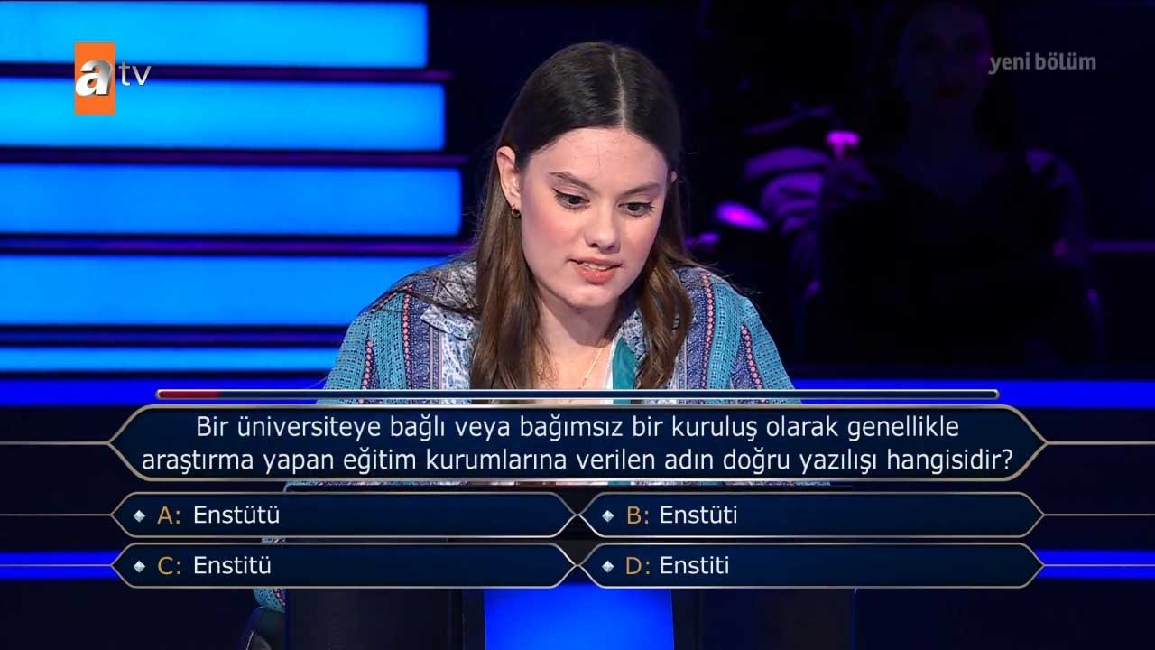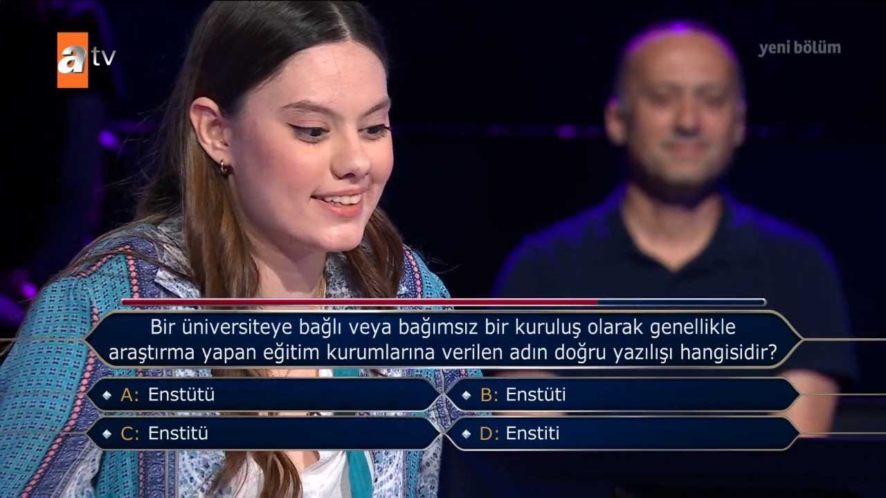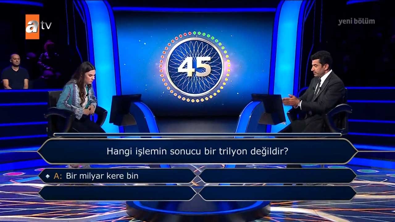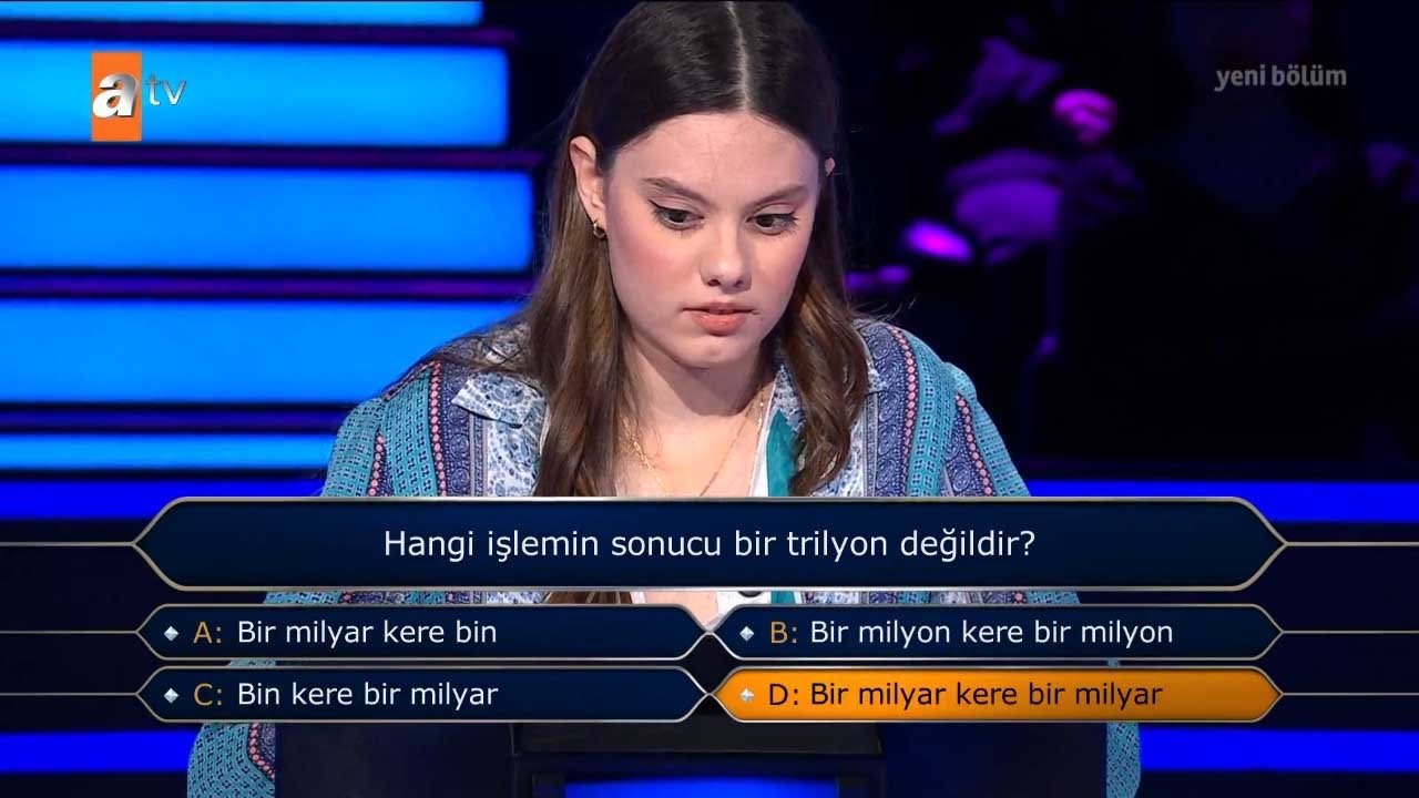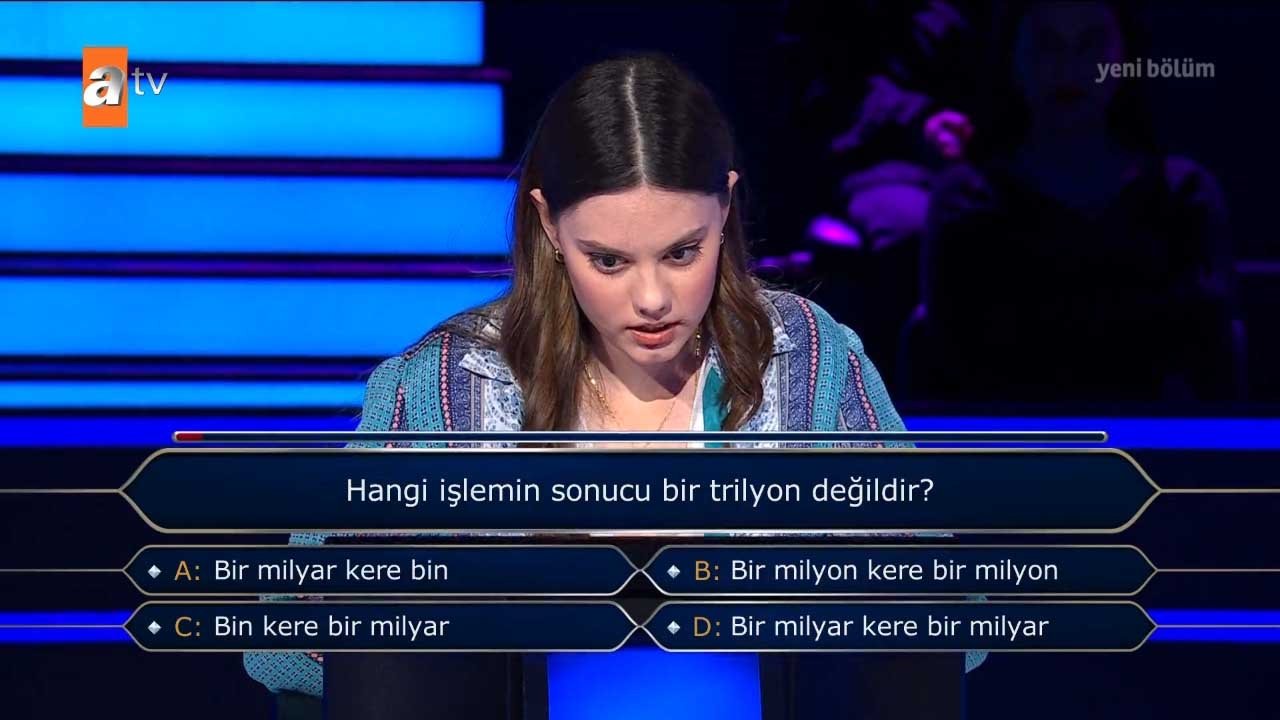 atv'nin Türkiye'yi ekrana kilitleyen ve büyük bir ilgiyle izlenen yarışması Kim Milyoner Olmak İster'in yeni bölümü yine nefesleri kesti. Yarışmaya katılan Robert Koleji 11. sınıf öğrencisi İdil Aybala Esmer, yarışmanın unutulmazları arasına girdi.