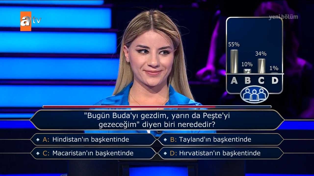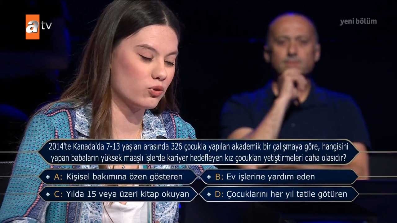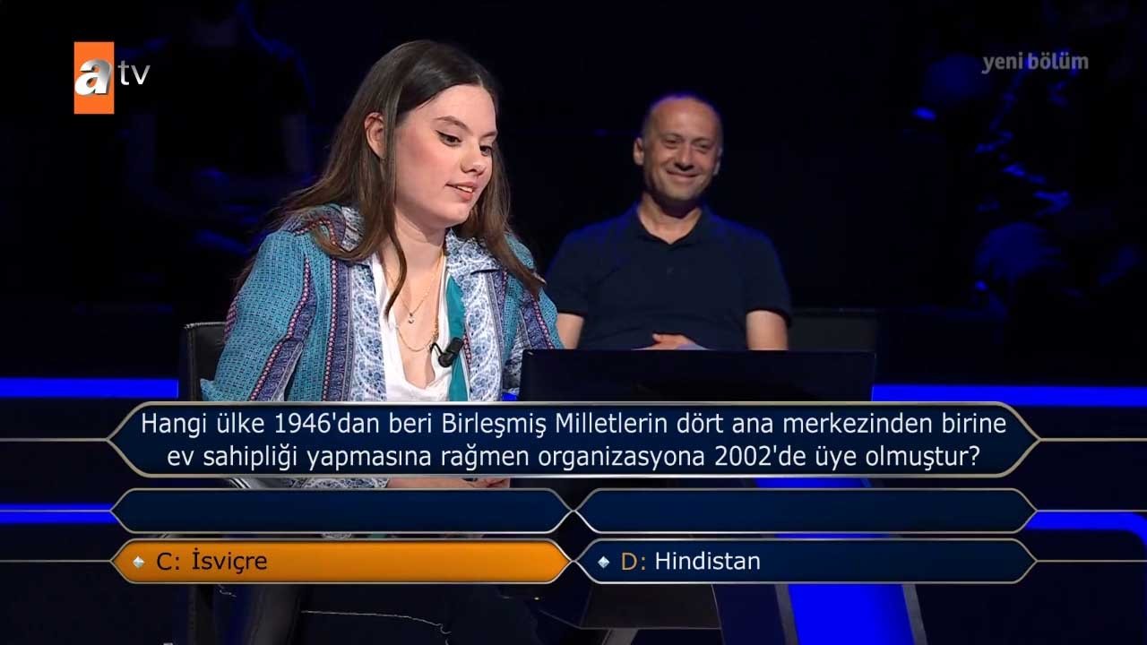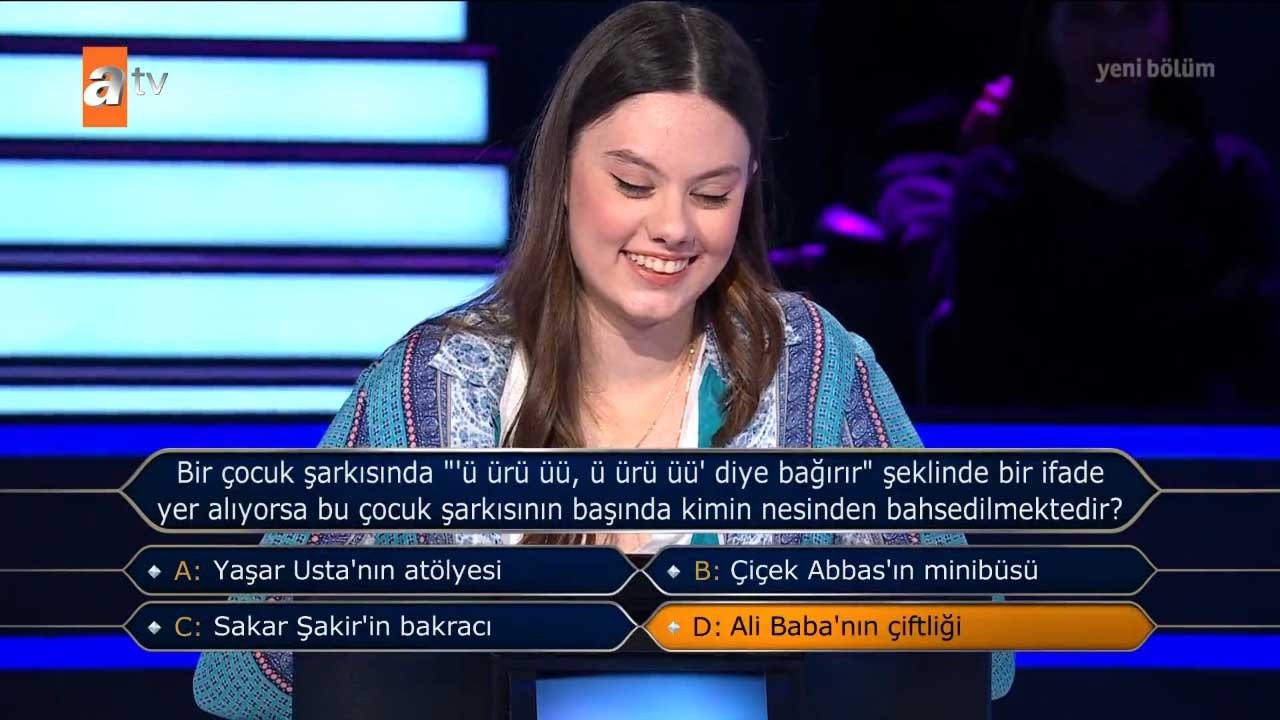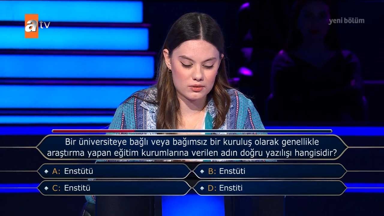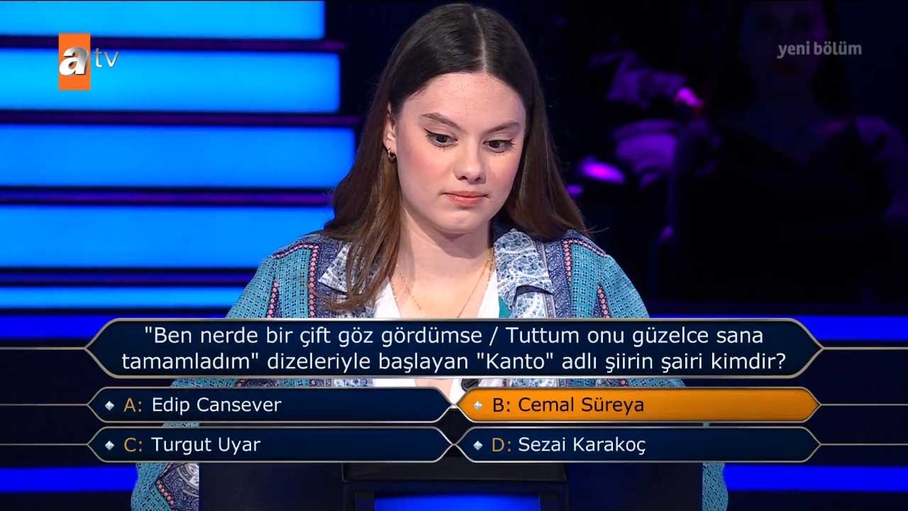 atv'nin Türkiye'yi ekrana kilitleyen ve büyük bir ilgiyle izlenen yarışması Kim Milyoner Olmak İster'in yeni bölümü yine nefesleri kesti. Yarışmaya katılan Robert Koleji 11. sınıf öğrencisi İdil Aybala Esmer, yarışmanın unutulmazları arasına girdi.