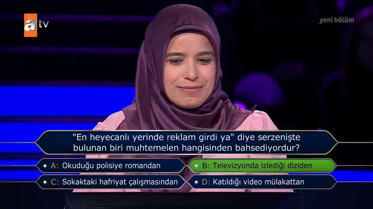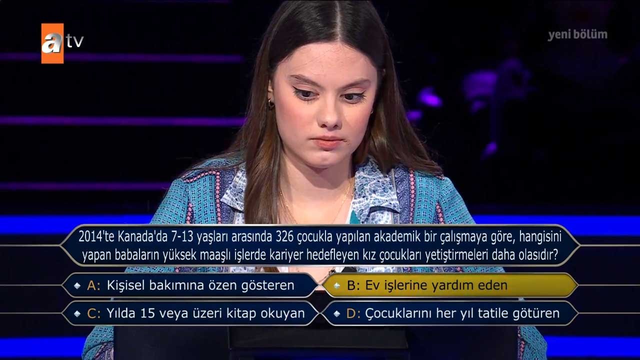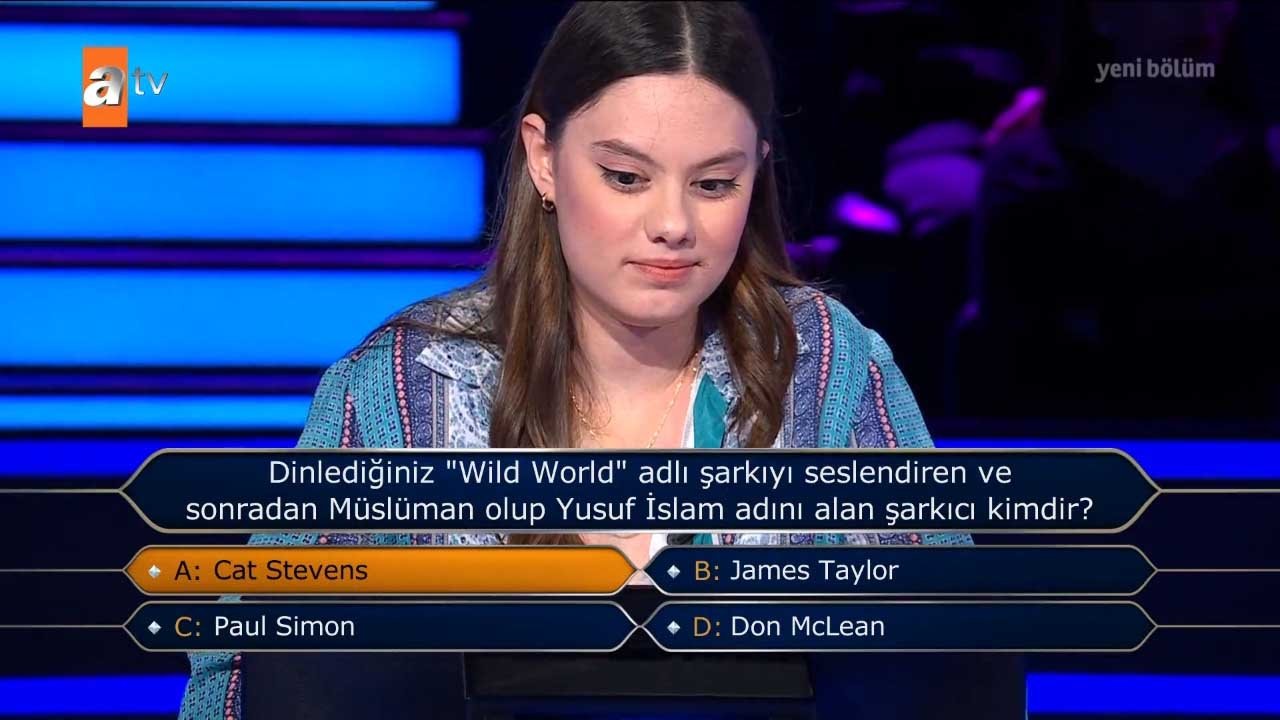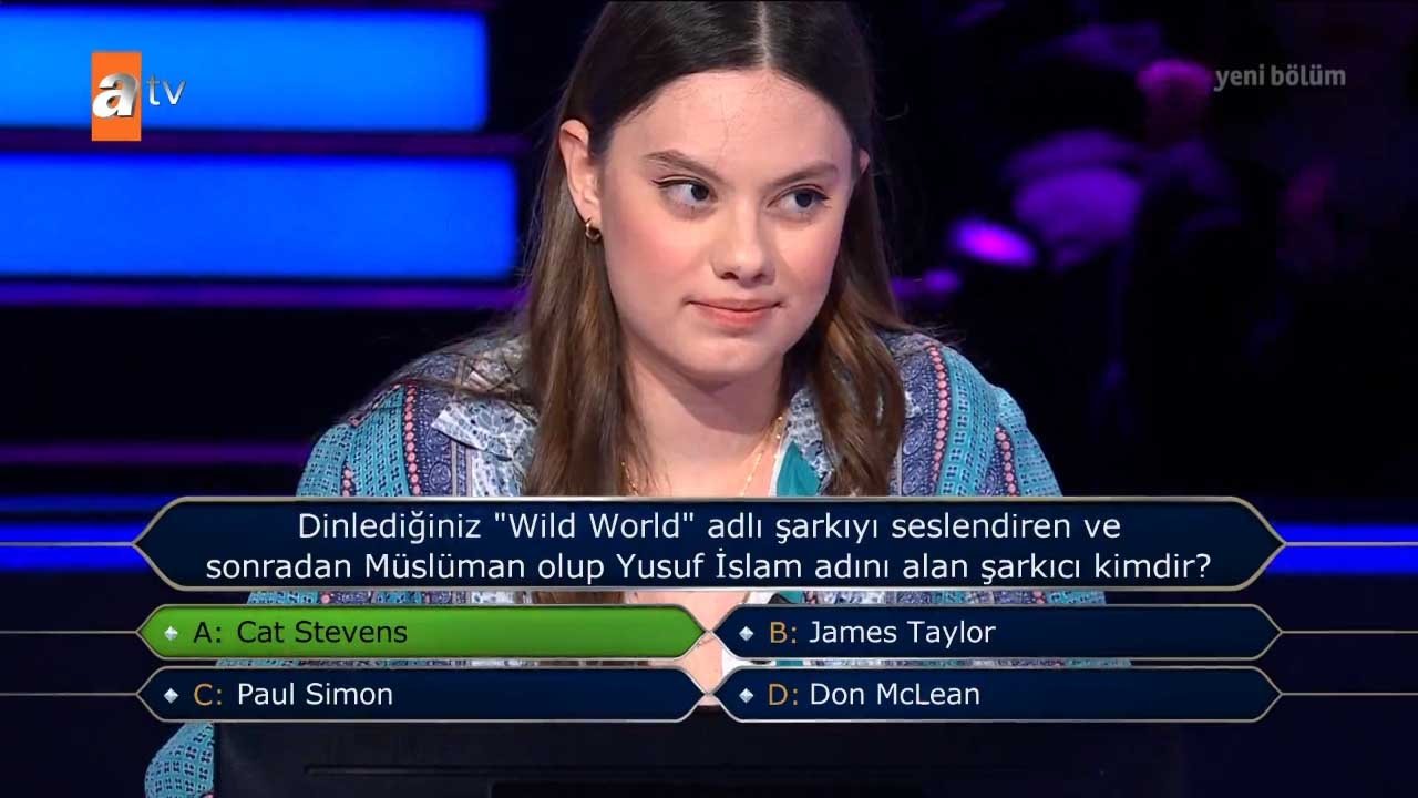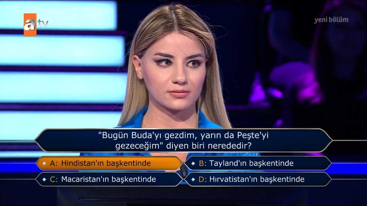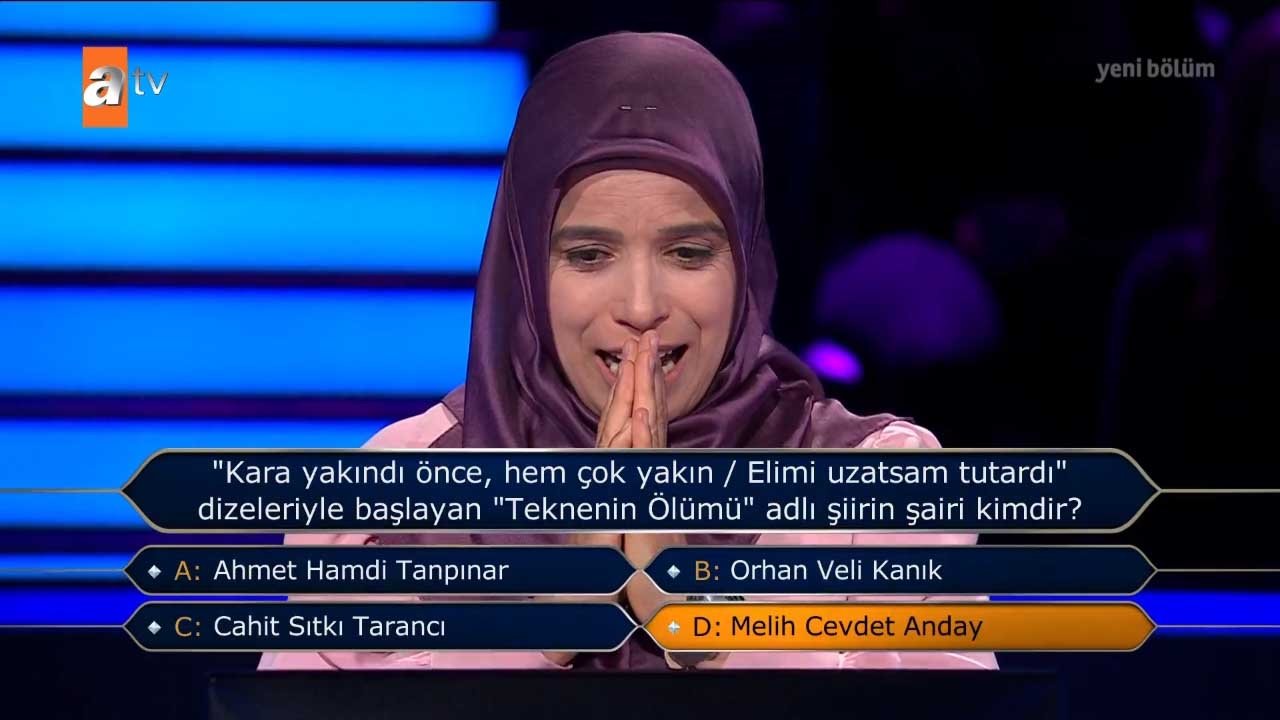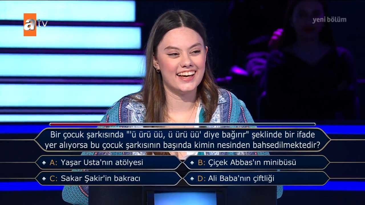 atv'nin Türkiye'yi ekrana kilitleyen ve büyük bir ilgiyle izlenen yarışması Kim Milyoner Olmak İster'in yeni bölümü yine nefesleri kesti. Yarışmaya katılan Robert Koleji 11. sınıf öğrencisi İdil Aybala Esmer, yarışmanın unutulmazları arasına girdi.