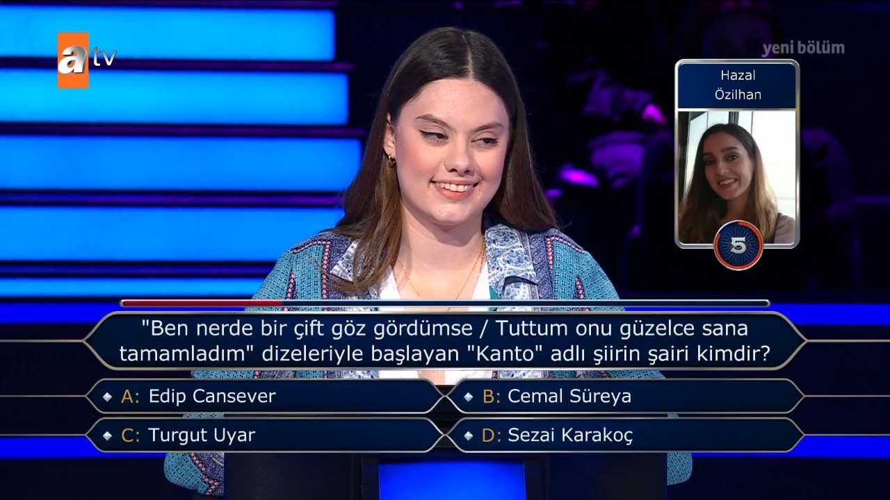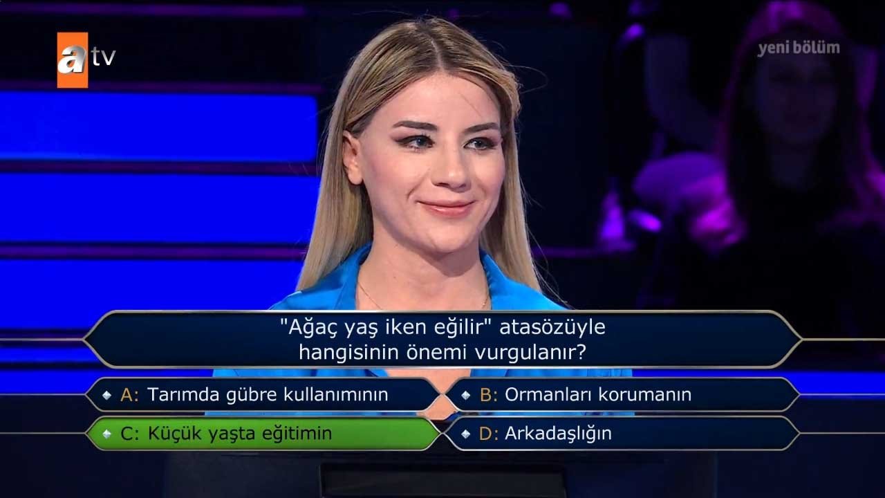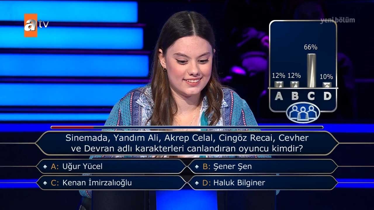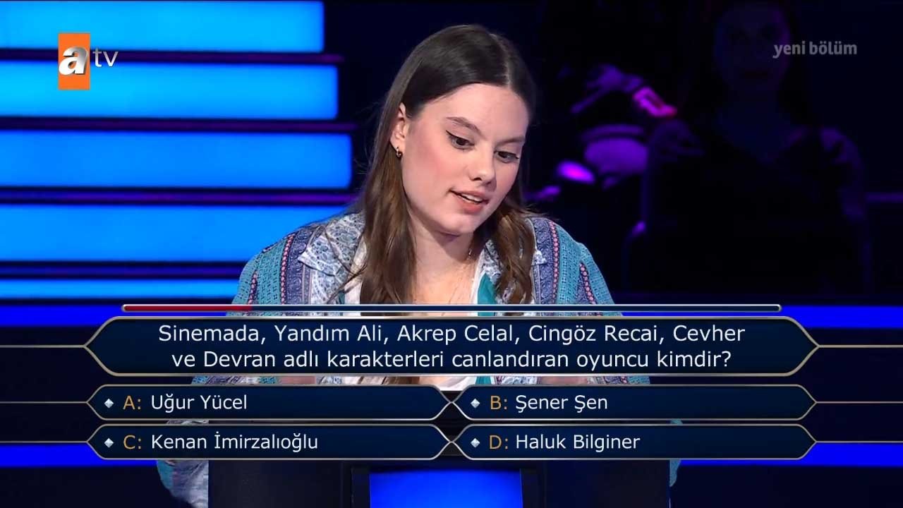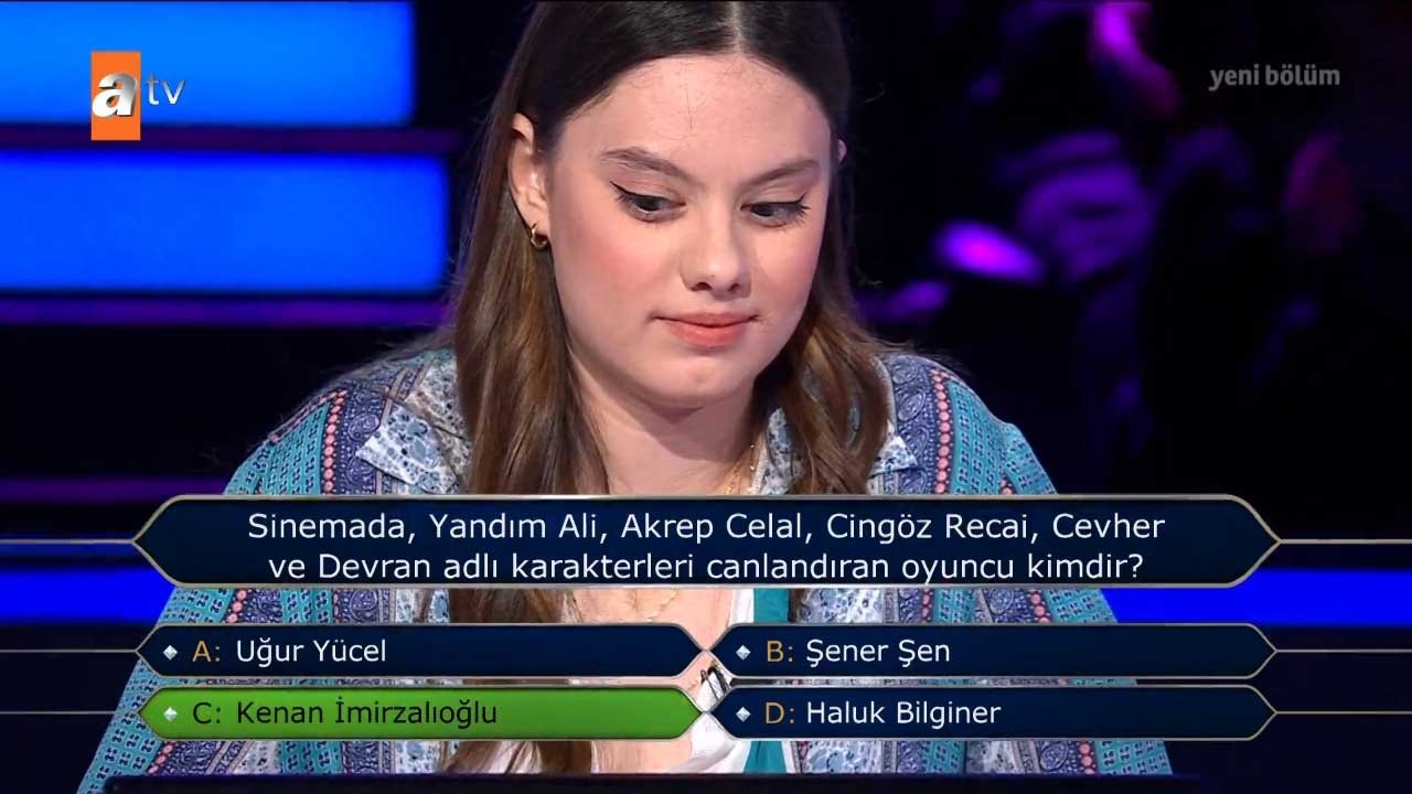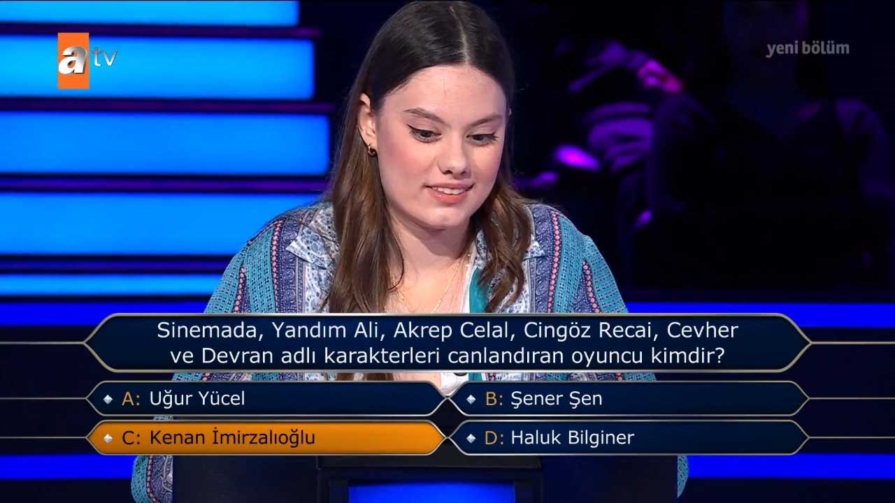 Kim Milyoner Olmak İster'de heyecan yine zirveye ulaştı. Kenan İmirzalıoğlu'nun sunumuyla ekrana gelen yarışmaya 18 yaşındaki İdil Aybala Esmer damga vurdu. Henüz lise öğrencisi olan genç yarışmacının performansı heyecan yarattı.