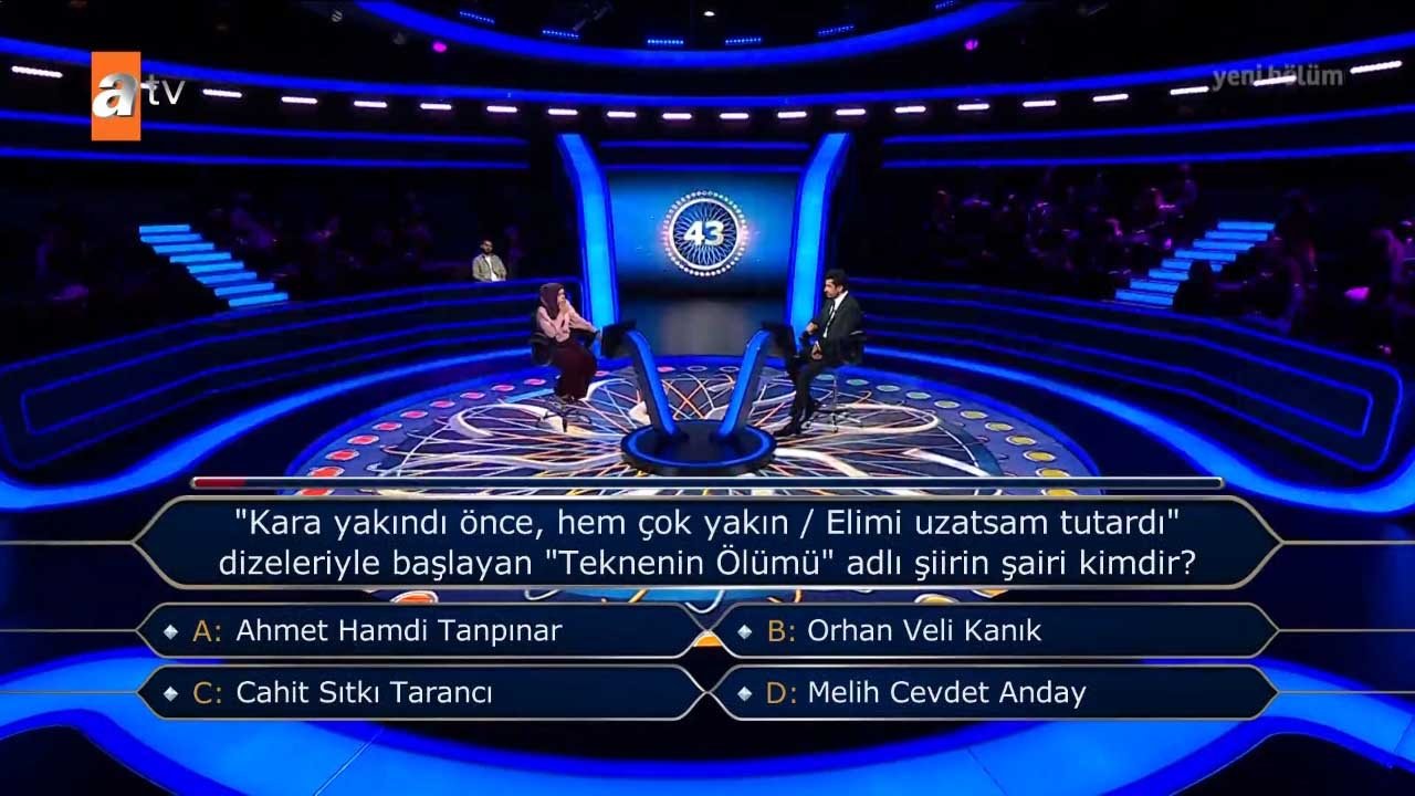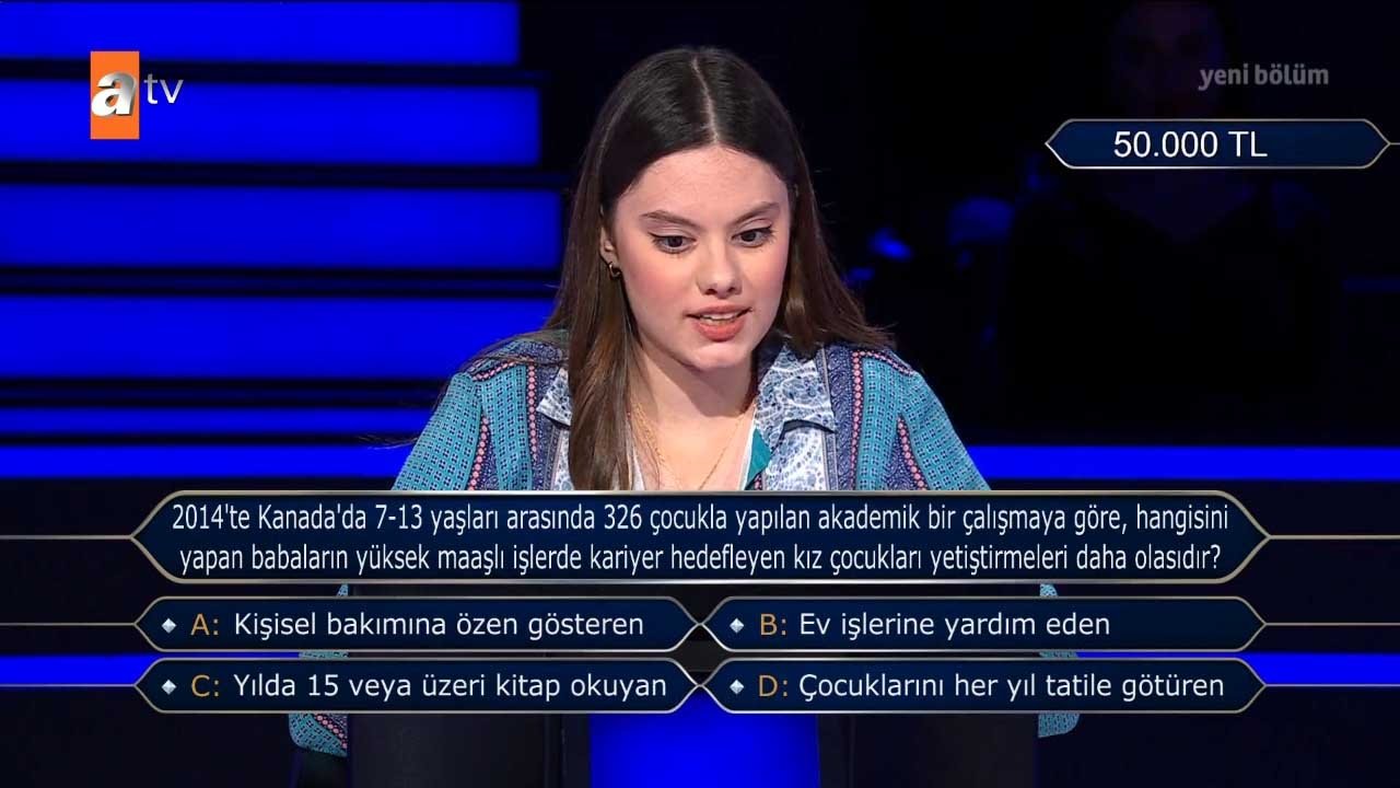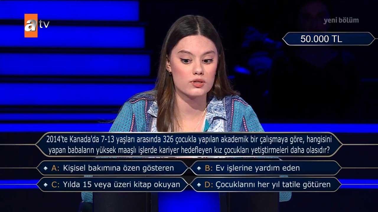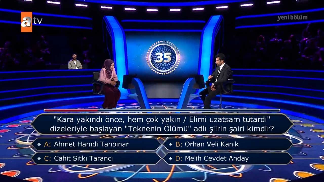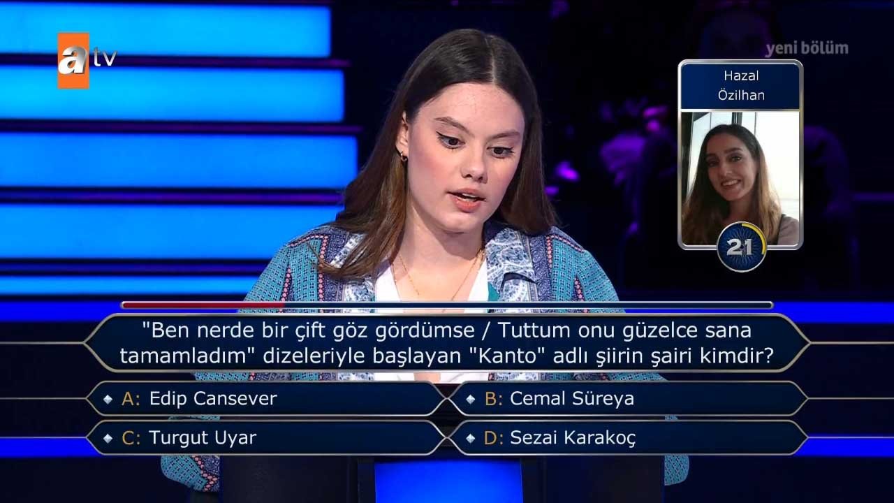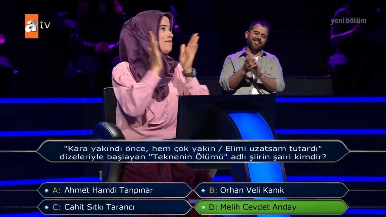 Kim Milyoner Olmak İster'de heyecan yine zirveye ulaştı. Kenan İmirzalıoğlu'nun sunumuyla ekrana gelen yarışmaya 18 yaşındaki İdil Aybala Esmer damga vurdu. Henüz lise öğrencisi olan genç yarışmacının performansı heyecan yarattı.