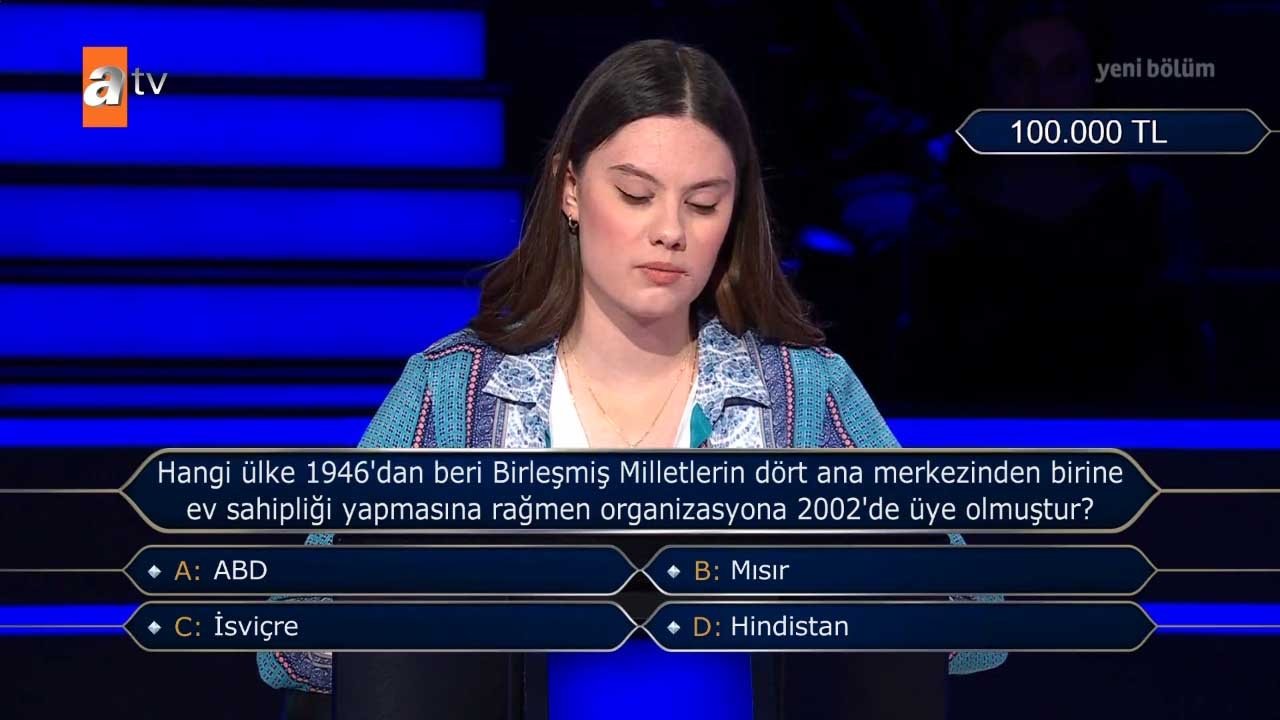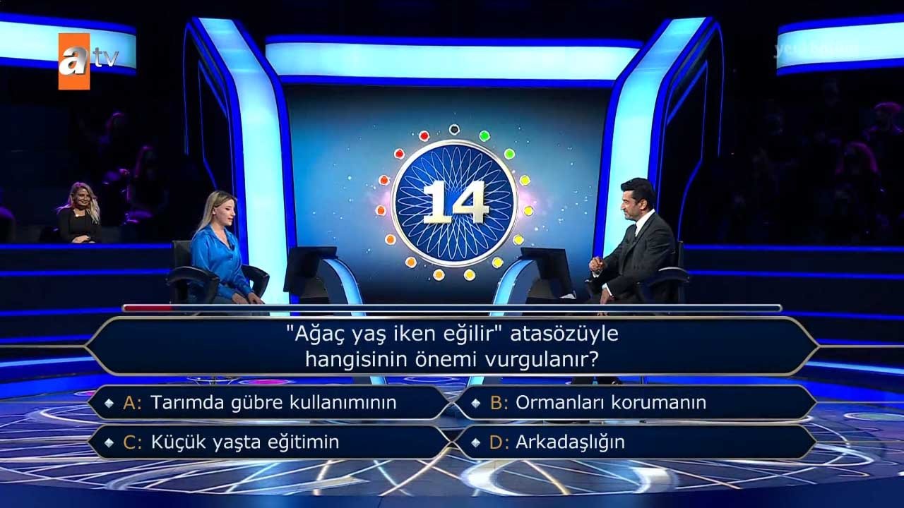 Türkiye'nin en çok sevilen ve uzun yıllardır beğeniyle takip edilen yarışma programı Kim Milyoner Olmak İster? yine çok konuşulan bir bölümle ekrana geldi. atv'nin efsane programı Kim Milyoner Olmak İster'in yeni bölümünde yarışan Robert Koleji 11. sınıf öğrencisi İdil Aybala Esmer, yarışmanın unutulmazları arasına girdi. Esmer, 1 Milyonluk son soruyu görmeye çok yaklaştı. Sunucu Kenan İmirzalıoğlu da bir ilki yaşadı ve izleyenler başarılı genç Aybala Esmer'in performansını alkışladı. 29 Mayıs 2022 Pazar günü yayınlanan Kim Milyoner Olmak İster'de neler yaşandı? İdil Aybala Esmer'in yarışmaya veda ettiği soru neydi? İşte detaylar...