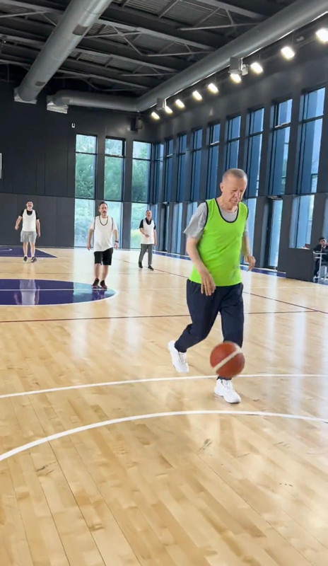 "Arada maçtan kaytarıp video çektiğim doğrudur..." notuyla paylaştığı videoda, Başkan Erdoğan'ın potaya sayı attığı ve takımını yönlendirdiği anlar dikkatlerden kaçmadı. Başkan Erdoğan'ın formasını giydiği yeşil takım, maçı 50-22 kazandı. Basketbol maçında Cumhurbaşkanlığı İletişim Başkanı Fahrettin Altun, MİT Başkanı İbrahim Kalın, AK Parti Bursa Milletvekili Mustafa Varank, AK Parti İzmir milletvekilleri Mehmet Muharrem Kasapoğlu ve Alpay Özalan da yer aldı.