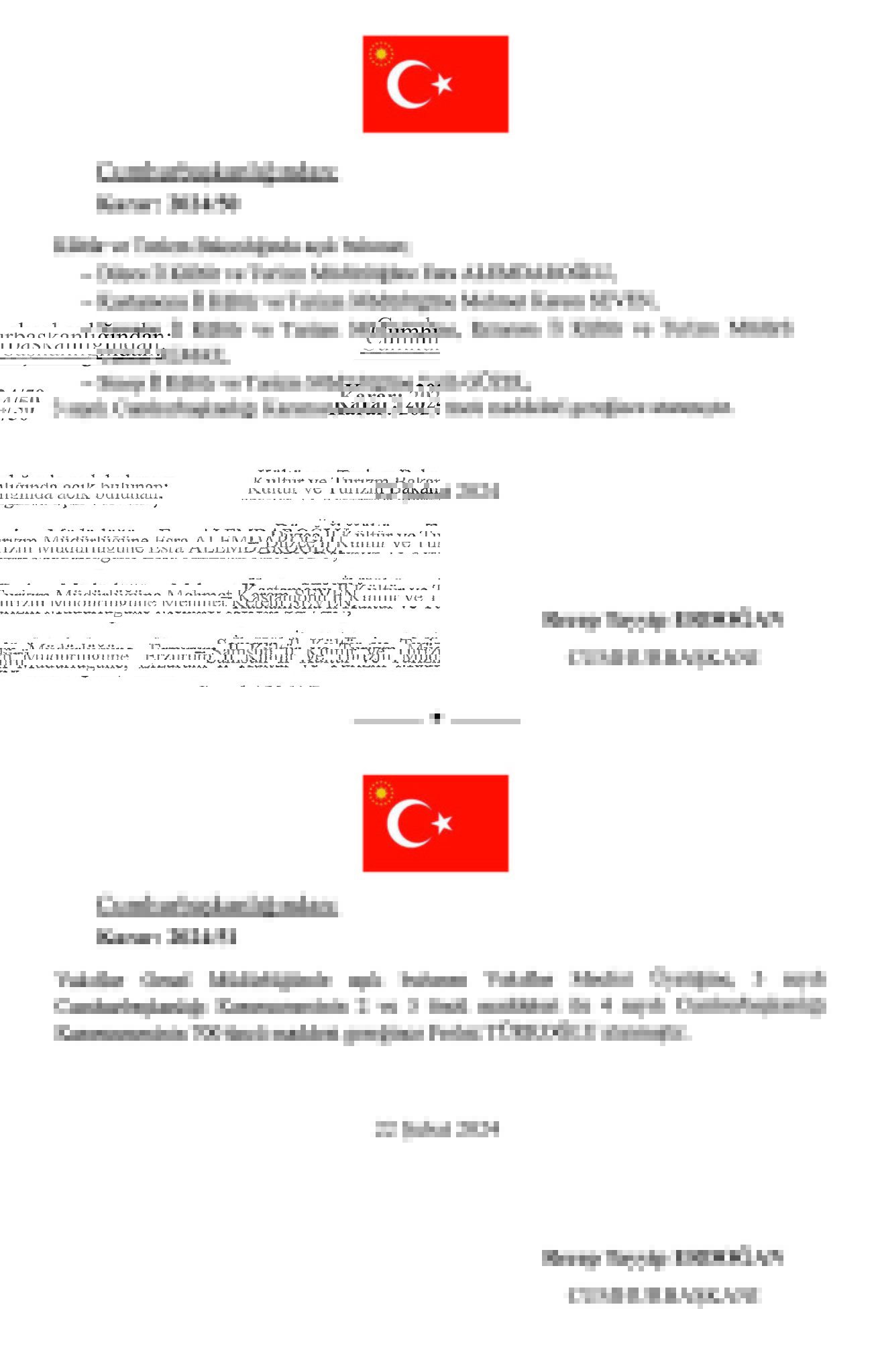 Resmi Gazete'de Başkan Recep Tayyip Erdoğan tarafından imzalanan kritik atama kararları yayımlandı. Adalet Bakanlığı, TPAO Genel Müdürlüğü, Kültür Turizm Bakanlığı Sinema Genel Müdürlüğü, MASAK ve Milli Piyango Genel Müdürlüğü'nün de aralarında bulunduğu kurumlara önemli atamalar gerçekleşti. İşte Resmi Gazete'de yayımlanan atama kararları...