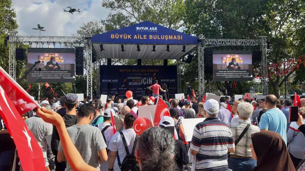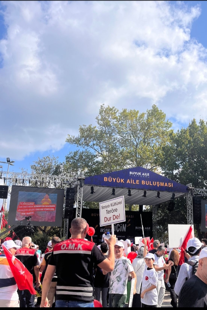 Türkiye'de normalleştirilmeye çalışılan ve cinsel kimlik karmaşası yaşayanların çatı adı olarak bilinen LGBTİ dayatmasına karşı 'Büyük Aile Buluşması" bugün İstanbul Saraçhane'de 200 STK'nın katılımıyla düzenlendi. 15 kurucu üyesi olan ve 200'den fazla STK'nın oluşturduğu Büyük Aile Platformu öncülüğünde düzenlenen miting, İstanbul Saraçhane'de saat 15:00'da gerçekleşti. AK Parti İstanbul İl Başkanı Osman Nuri Kabaktepe de sosyal medya hesabından bir paylaşım yaparak, "Aile, milletimizin bu topraklarda geleneklerini, göreneklerini, yaşam anlayışını inşa eden en önemli kurumdur. Ailemizin, çocuklarımızın ve en önemlisi milletimizin geleceğini korumak hepimizin vazifesidir." ifadelerini kullanmış ve mitingin gerçekleştirileceği lokasyon ve saat bilgilerini paylaşmıştı.