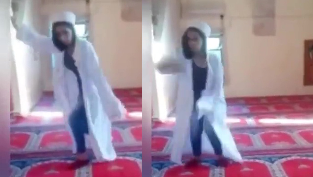 Camide skandal görüntü! Genç kadın, imam cübbesini giyip dans etti | Video