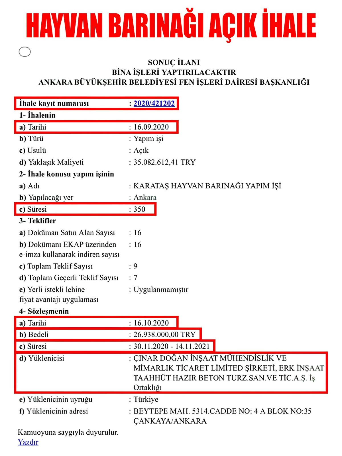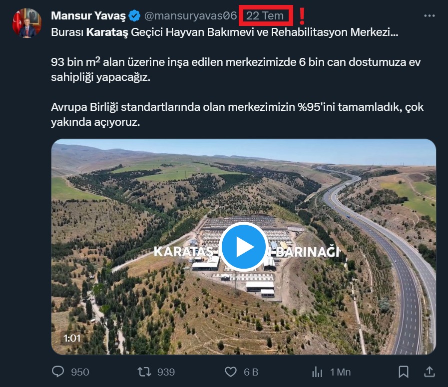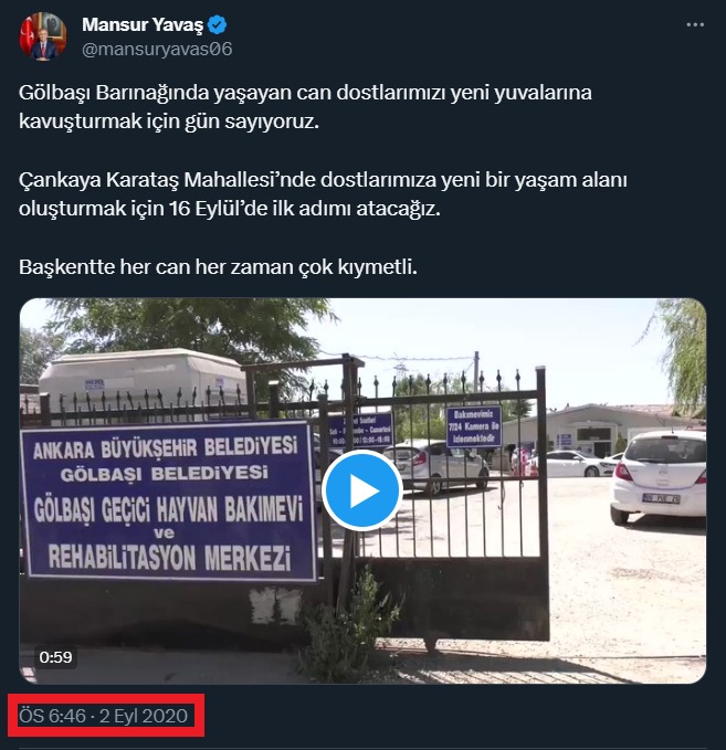 Bu sözün ardından Başkan Yavaş'ın 16 Eylül 2020 yılında Gölbaşı'nda 6 bin sokak hayvanının barınacağı Karataş Geçici Bakımevi ve Rehabilitasyon Merkezi Projesi'nin ihalesini yaptığını hatırlatan Başkan Yavaş, "Aradan geçen 1 yılda barınağın ihalesini alan şirket tek bir çivi çakmazken 7 Temmuz 2021 yılında yaklaşık 45 milyon lira bedelle yeni bir ihale yapıldı ve Nisan 2022'de çalışmaların biteceğinin sözü verildi." dedi.