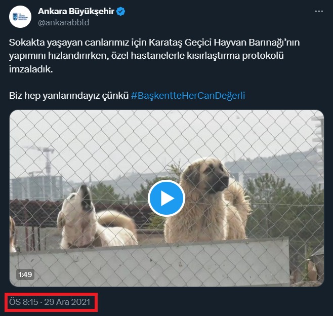 Başkan Yavaş'ın göreve geldiğinde Ankara'da köpek barınağı olmasına rağmen bir tane köpek barınağı olmadığını iddia ettiğini hatırlatan Özcan, "Sayın Yavaş kendi sosyal medya hesabı üzerinden 2 Eylül 2020 tarihinde 'Başkent'te her can her zaman çok kıymetli' diyerek yaptığı paylaşımla da, 'Çankaya Karataş Mahallesi'nde dostlarımıza yeni bir yaşam alanı oluşturmak için 16 Eylül'de ilk adımı atacağız' sözünü verdiğini kaydetti.