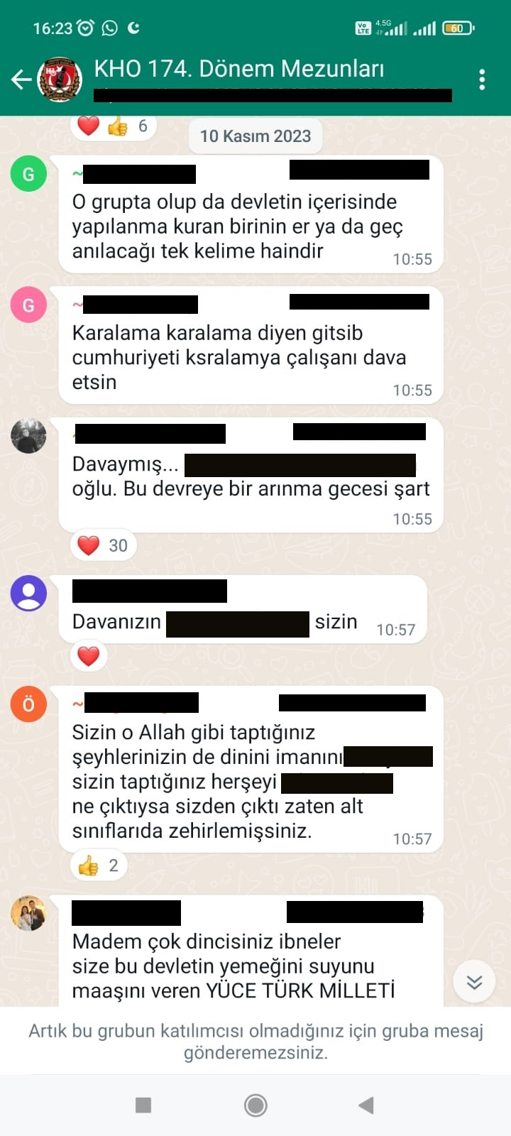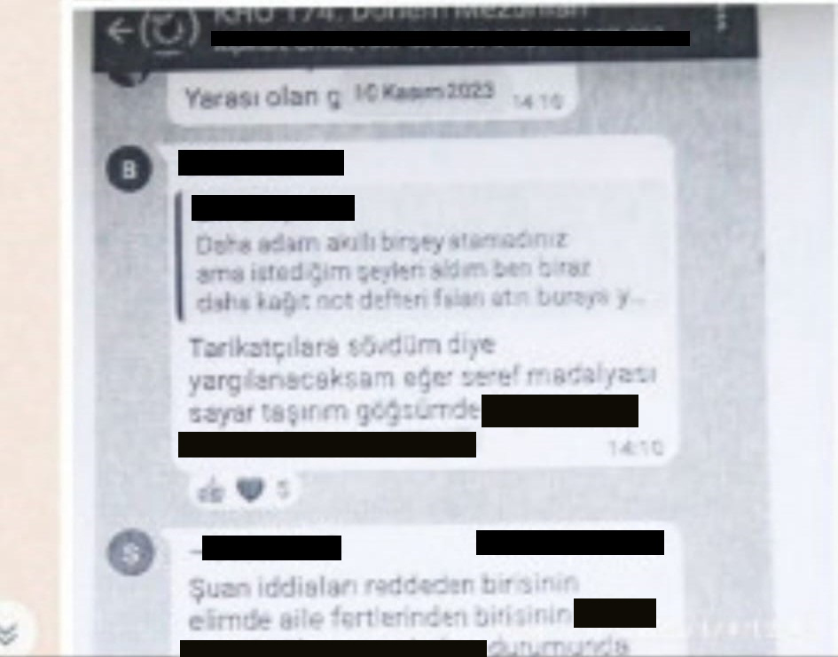 İhraç edilen diğer isimlerden Özgür Sığırcı'nın ise "Burada Allah da benim mahkeme de" diyerek haddini aşan ifadeler kullandığı, WhatsApp yazışmalarında ise dini değerlere küfürler yağdırdığı ortaya çıktı. Bekir Yıldırım'ın, "Tarikatçılara sövdüm diye yargılanacaksam bunu şeref madalyası gibi taşırım" diyerek nefret dolu söylemlerini açıkça dile getirdiği de dava dosyasında yer alıyor.