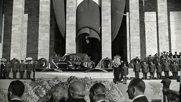 Atatürk'ün naaşı önünde saygı duruşunda bulunuluyor.