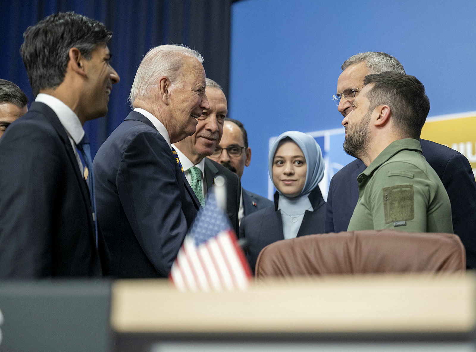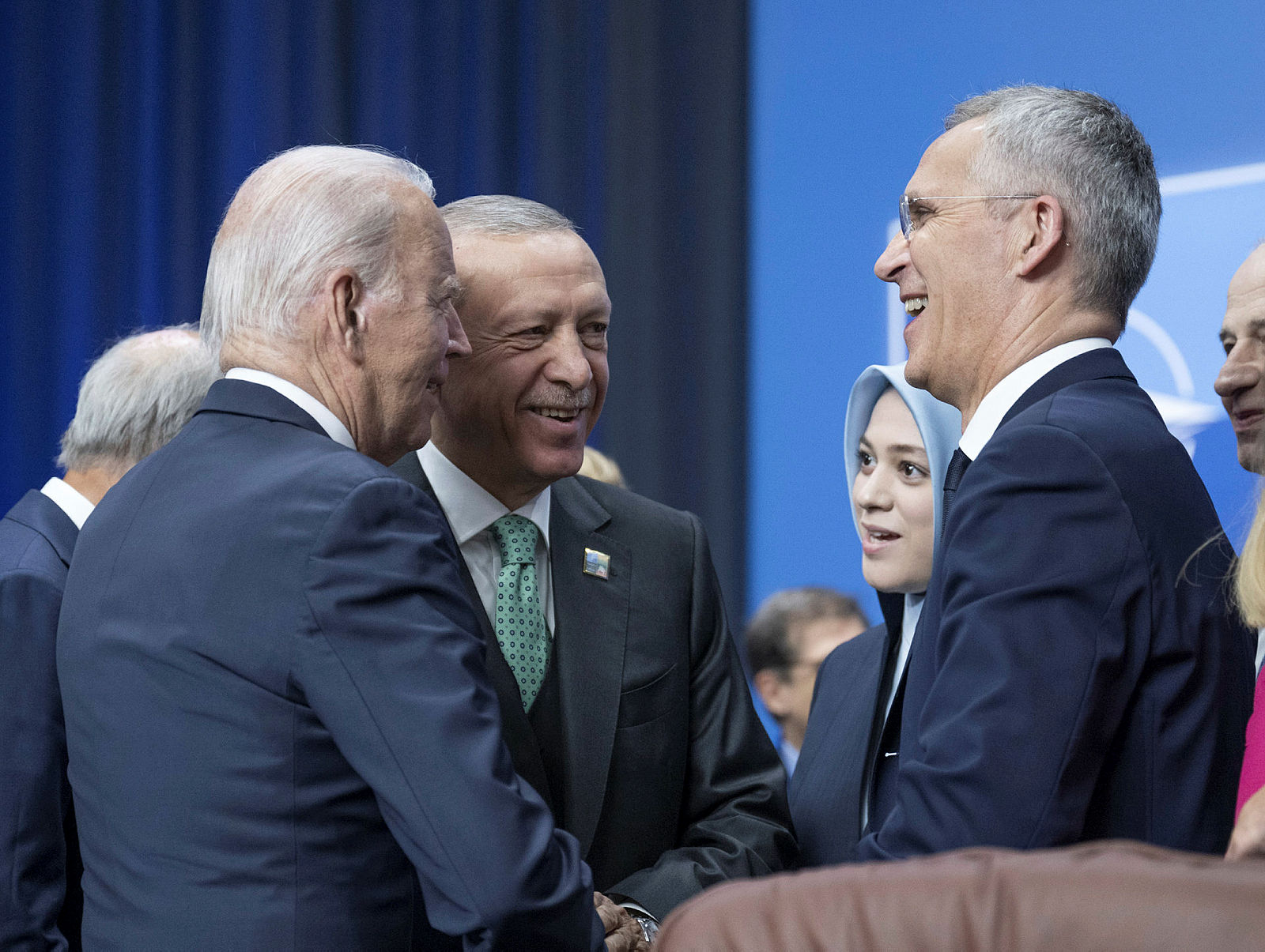 Başkan Biden'ın elindeki notlardan fotoğraf karelerine yansıyan başlıklarda "NATO, Türkiye, İsveç, Ukrayna" yazması dikkatlerden kaçmadı.