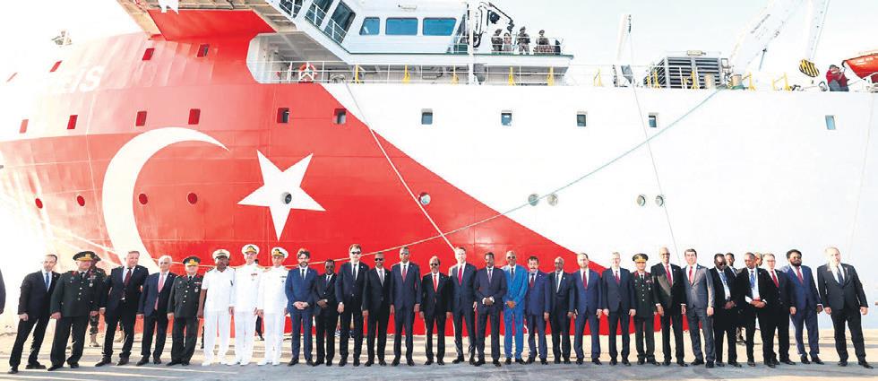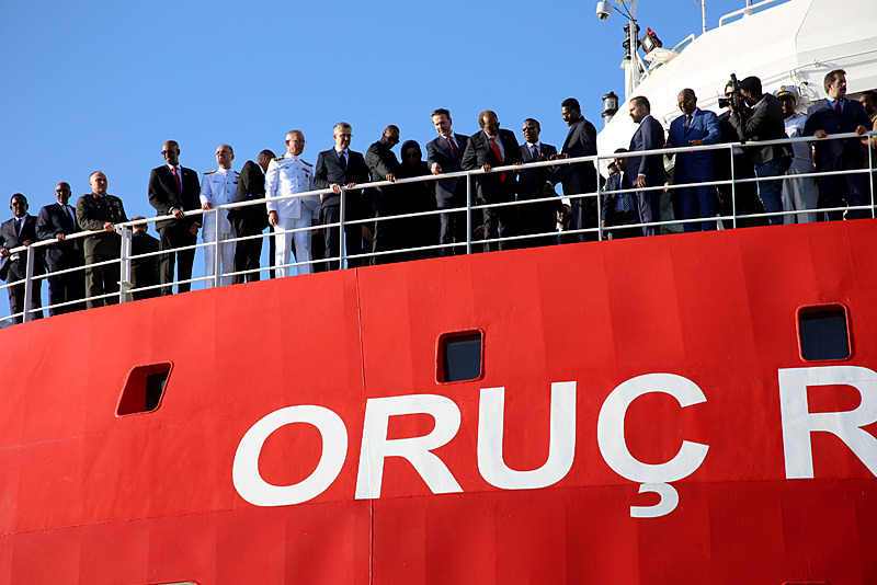 Oruç Reis için dün limanda göreve başlama töreni düzenlendi. Törene Somali Cumhurbaşkanı Hasan Şeyh Mahmud ile Enerji ve Tabii Kaynaklar Bakanı Alparslan Bayraktar'ın yanı sıra iki ülkeden üst düzey enerji bürokratları katıldı.