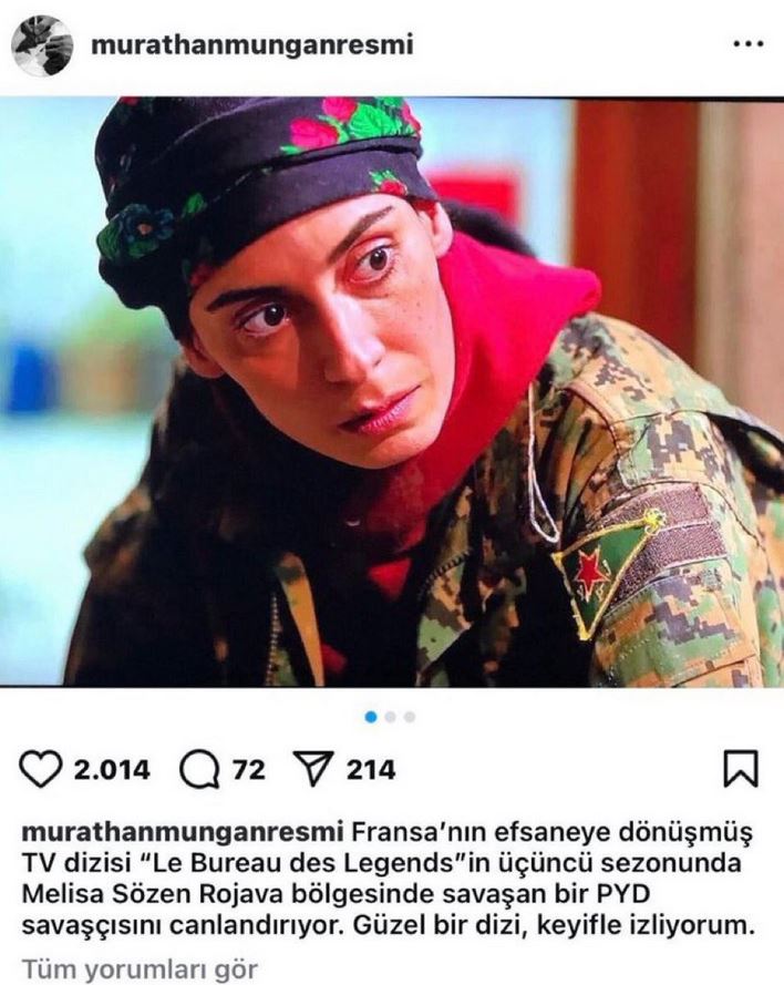 Öte yandan; Yazar Murathan Mungan da sosyal medya hesabı Instagram'dan Melisa Sözen'in rolünü ve ilgili yapımı güzelledi. Mungan, "Fransa'nın efsaneye dönüşmüş TV dizisi "Le Bureau des Legends"in üçüncü sezonunda Melisa Sözen Rojava bölgesinde savaşan bir PYD savaşçısını canlandırıyor. Güzel bir dizi, keyifle izliyorum" paylaşımını yaptı.