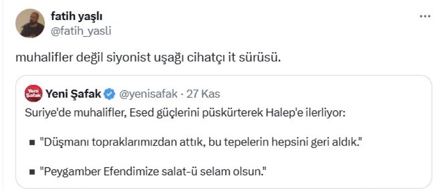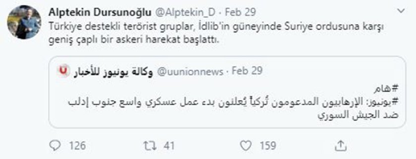 Bu sırada, Türkiye'deki İran ajanları da aynı çizgide söylem geliştirerek "İran ne yaparsa doğrudur" anlayışıyla Esed rejiminin işlediği katliamları meşrulaştırmaya çalıştı. İran'ın bölgedeki Şii yayılmacılığına dayanan politikalarını "vahdet" kisvesiyle örtbas etmeye kalkan bu kişiler, kamuoyunu yanıltmak adına "Direniş Ekseni" söylemi etrafında gerçeklerden çok uzak hikayeler uydurup durdular.