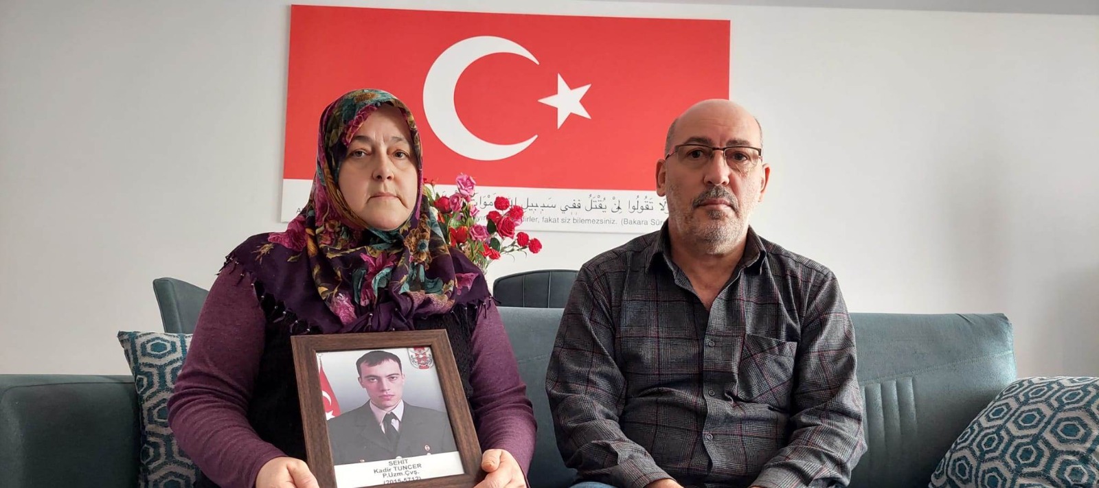 Suriye'nin İdlib kentinde, 3 yıl önceki Bahar Kalkanı Harekatında PKK'lı teröristler tarafından şehit düşen Piyade Uzman Çavuş Kadir Tuncer'in (27) Trabzon'da yaşayan babası Oktay Tuncer ve annesi Seher Tuncer, SABAH'a konuştu. Şehit annesi Seher Tuncer: "CHP, HDP ne derse onu yapmaya devam ediyor. 18'li koalisyonda olsanız ülkemizi bölemeyeceksiniz. Cumhurbaşkanı Tayyip Erdoğan'ın her zaman yanındayız." dedi.