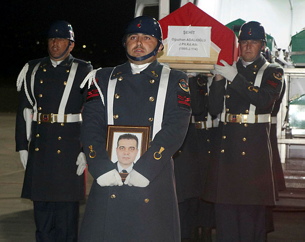 Kahramanmaraş'ın Dulkadiroğlu ilçesinde görev yapan Jandarma Pilot Kıdemli Albay Oğuzhan Adalıoğlu (50) pistte kalkış için hazırlık yapan helikopteri yönlendirdiği esnada helikopter pervanesinin başına çarpması sonucu şehit oldu.