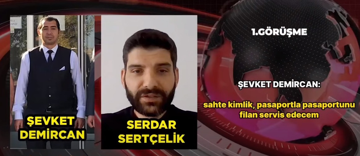 Şevket Demircan'ın Serdar Sertçelik'e "sınır kapısından seni aldırınca birde haber yaptıracağım. Sahte kimlik ve pasaportunu servis ettireceğim. Serdar Sertçelik olarak avukatın eşliğinde başkanın yanında ifaden alınacak. Bora'nın göndereceği avukatlardan biride olabilir. Sen ifadelerini verirsin. Suçlamalarının hiçbirini kabul etmezsin. Ben zaten mağdurum zor durumdayım falan dersin. Ama benim dediğim 1 kelimenin dışına bile çıkmayacaksın" dedi.