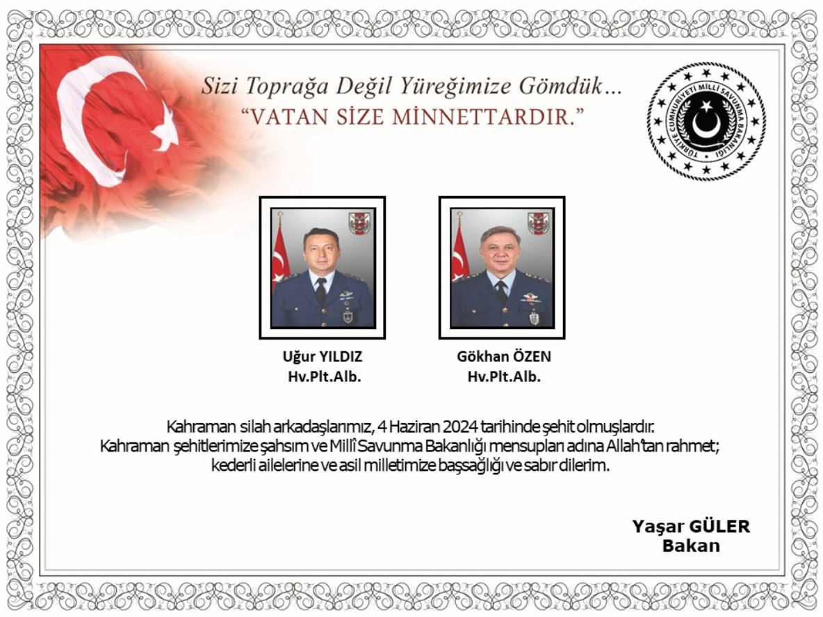 Uçak kazasıyla ilgili Milli Savunma Bakanlığı'ndan yapılan açıklamada;"Kayseri'deki 12'nci Hava Ulaştırma Ana Üs Komutanlığından eğitim için kalkan Hava Kuvvetleri Komutanlığımıza ait SF-260D tipi bir eğitim uçağımız henüz bilinmeyen bir nedenle kaza kırıma uğramıştır. Kazada iki pilotumuz şehit olmuştur" ifadelerine yer verildi.