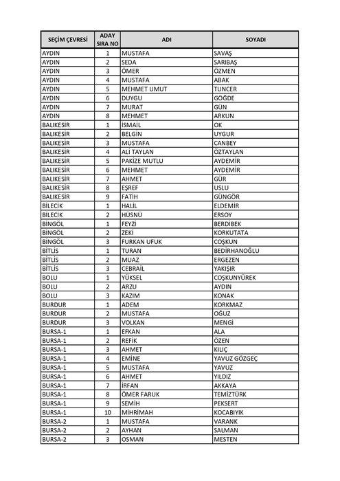 AK Parti'de Milletvekili adayları il il ve isim isim tam liste açıklandı. 21 yıldır parti içi demokrasiyi dünyaya siyaset dersi olacak şekilde işleten AK Parti, titizlikle hazırladığı milletvekilliği aday listesini YSK'ya teslim etti. Başkan Recep Tayyip Erdoğan'ın 'Şahlanış dönemi' dediği 14 Mayıs sonrasına yüzde 70'lik büyük değişimle giren AK Parti kadınlara ve gençlere yine özel önem verdi. İşte il il AK Parti'nin 2023 Milletvekili aday listesi...