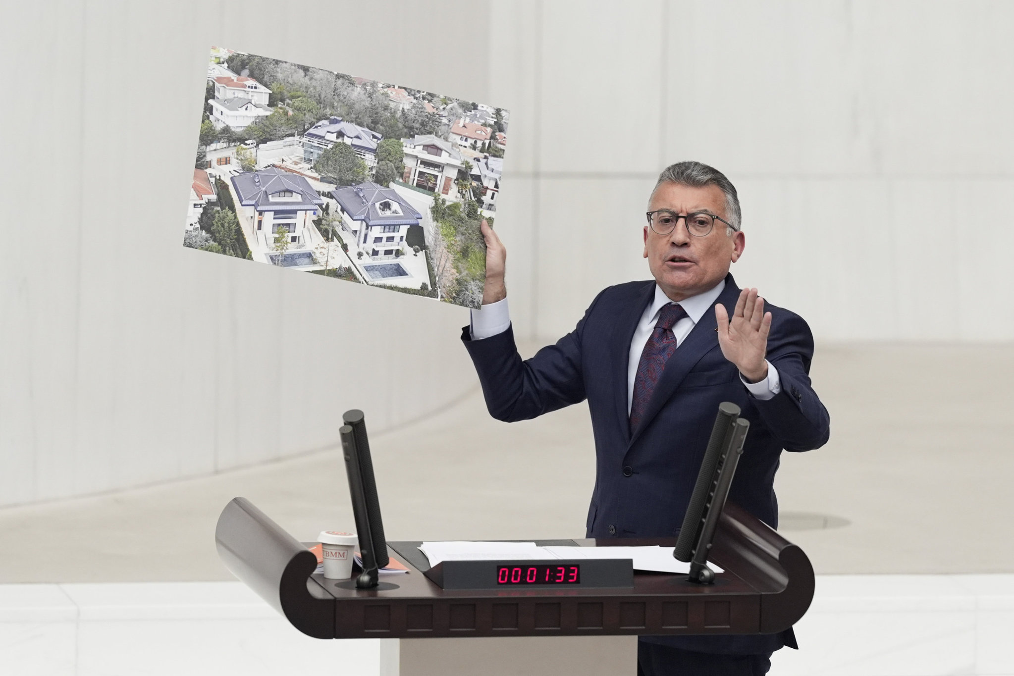 TBMM Genel Kurulu'nda 2026 yılı bütçesinin tümü üzerindeki görüşmeler kapsamında kürsüye çıkan AK Parti Grup Başkanı Güler, üzerinde milyon dolarlık villalar ile arazinin yer aldığı fotoğrafları Genel Kurul'a ve ön sırada oturan CHP lideri Özel'e göstererek iddianamenin villalarla ilgili bölümlerini okudu ve arka arkaya sorular yöneltti.
