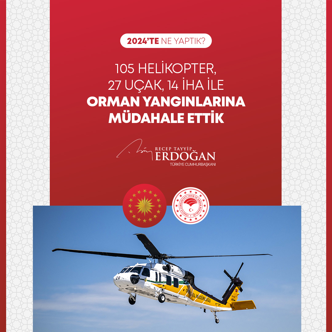 "105 helikopter, 27 uçak ve 14 İHA ile orman yangınlarına karşı etkin mücadele verdik."