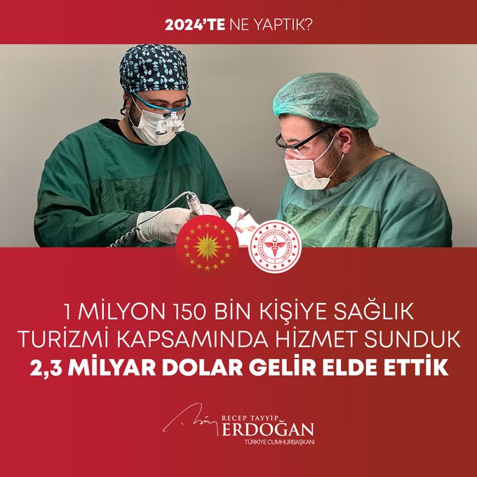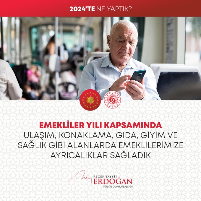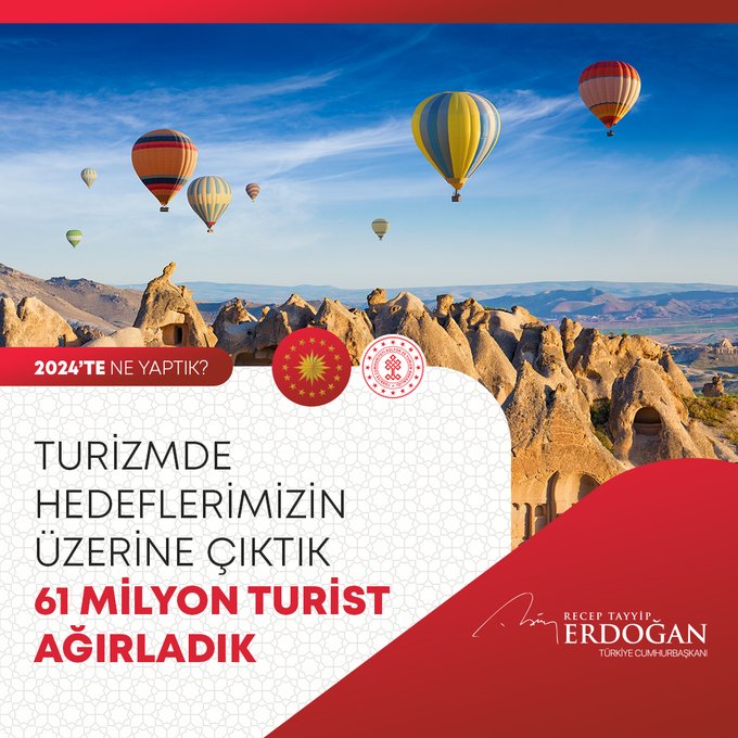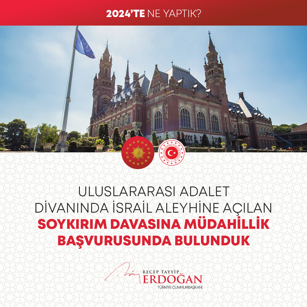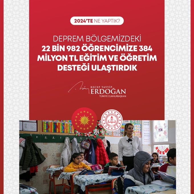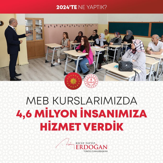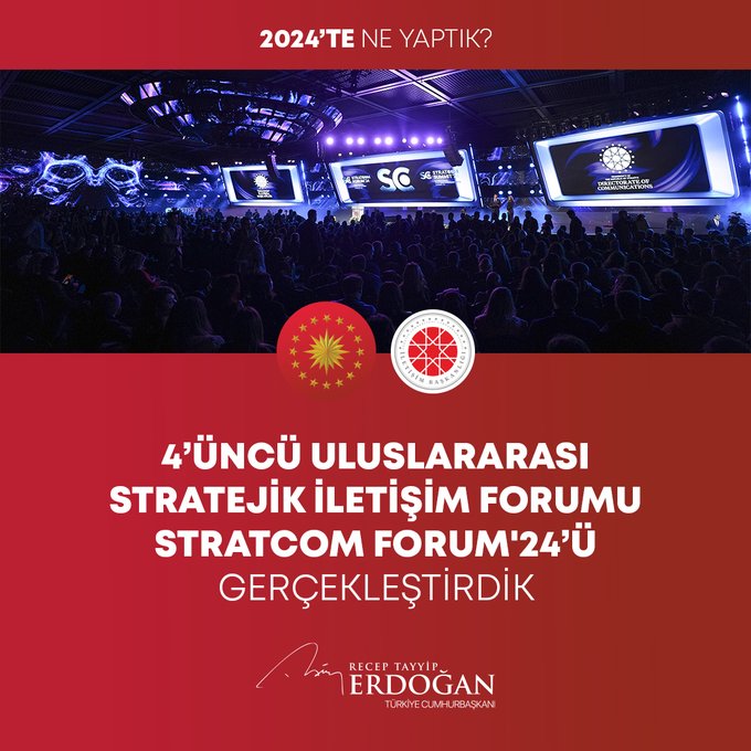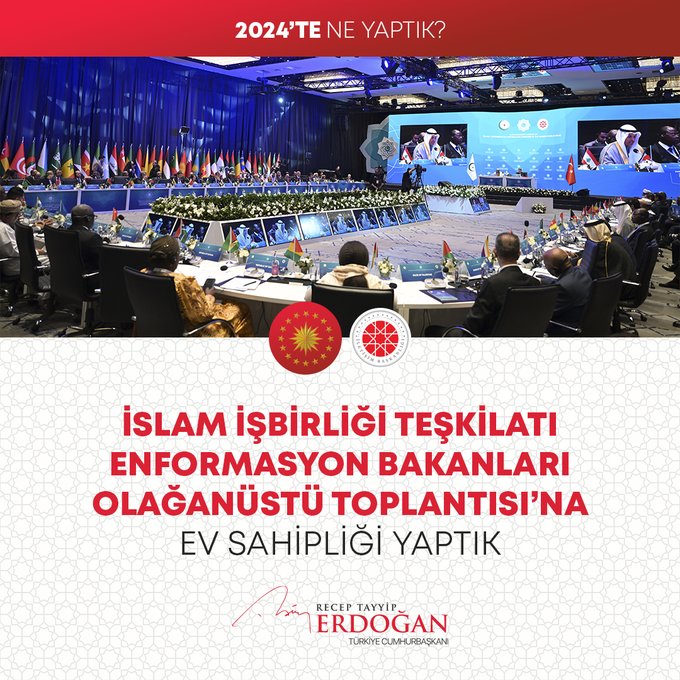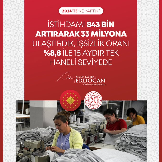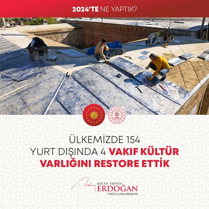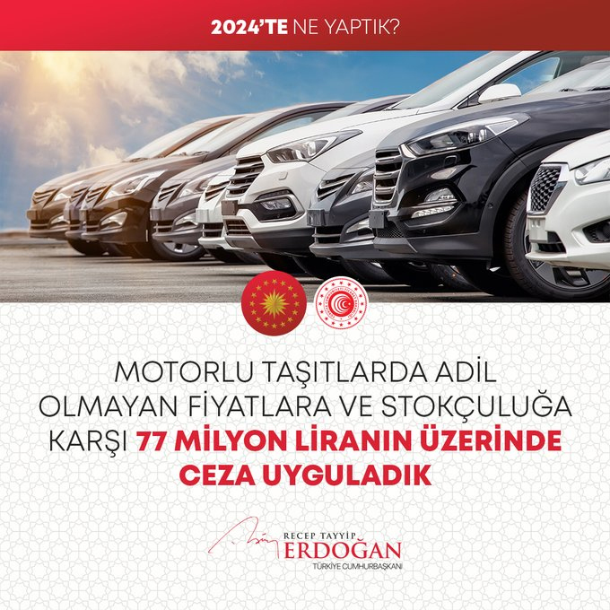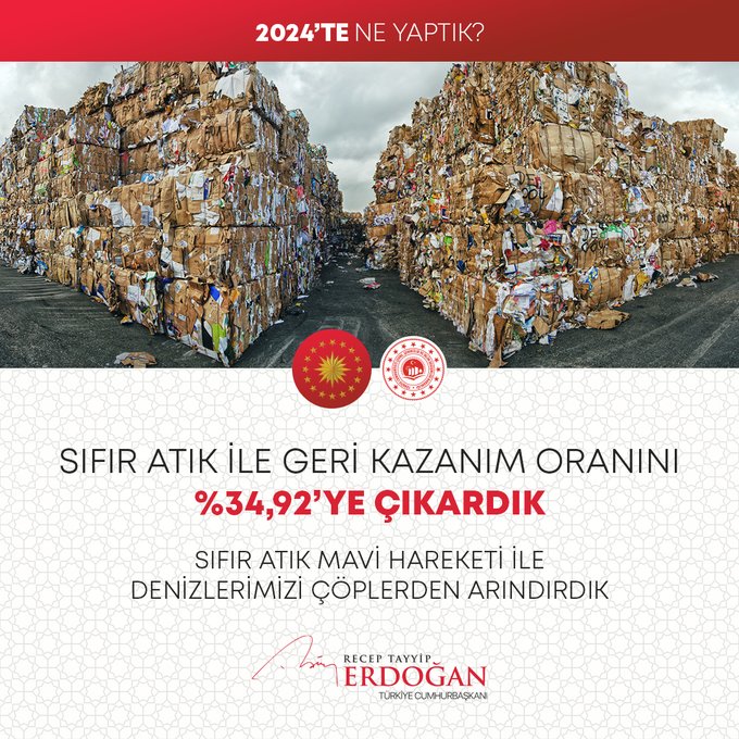Erdoğan paylaşımında, "Aziz milletimize hizmet yolunda, 2024 yılında da durmadan, dinlenmeden, gece gündüz demeden aşkla çalıştık; ülkemize her alanda çok önemli eserler, hizmetler, projeler, yatırımlar kazandırdık. 2025 yılına girerken bu hizmetleri bir özetleyelim, hatırlayalım..." ifadelerini kullandı.