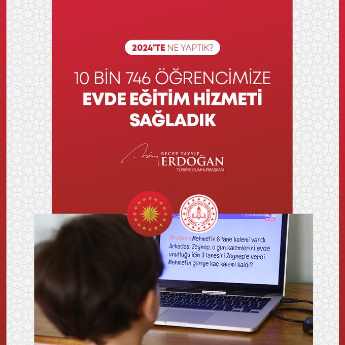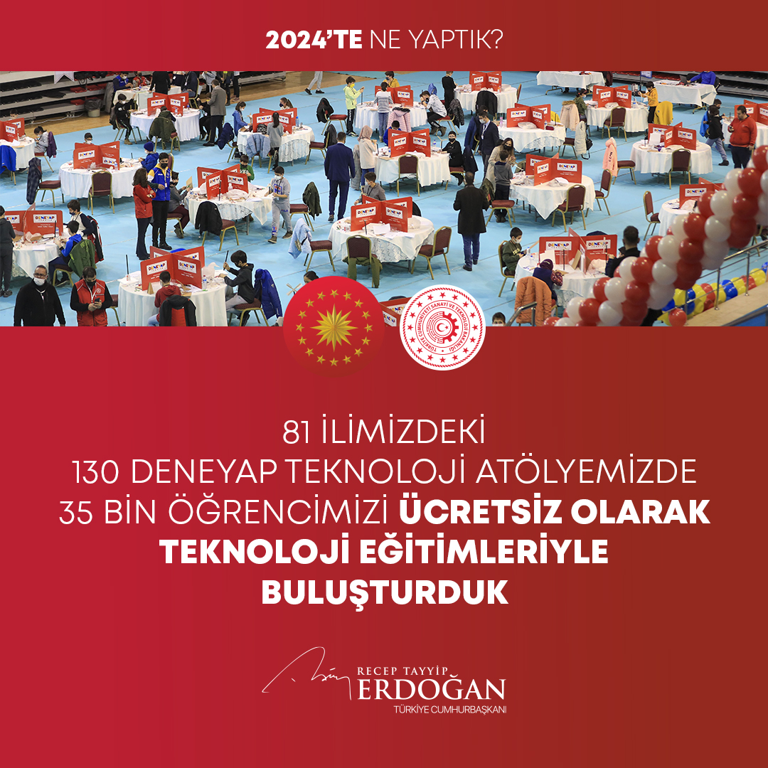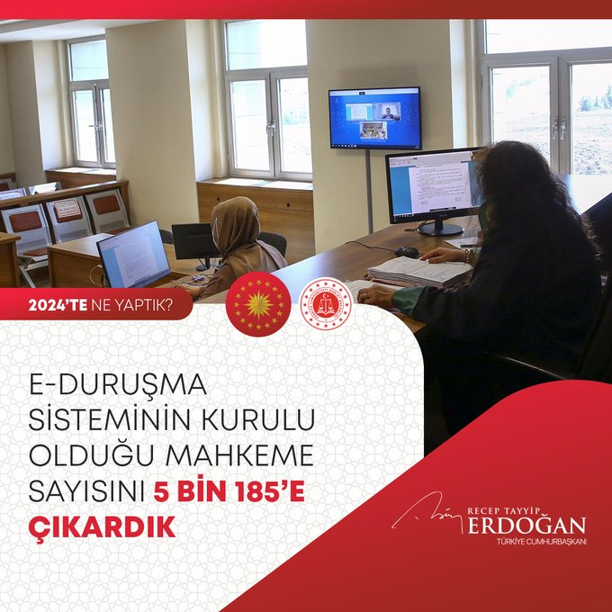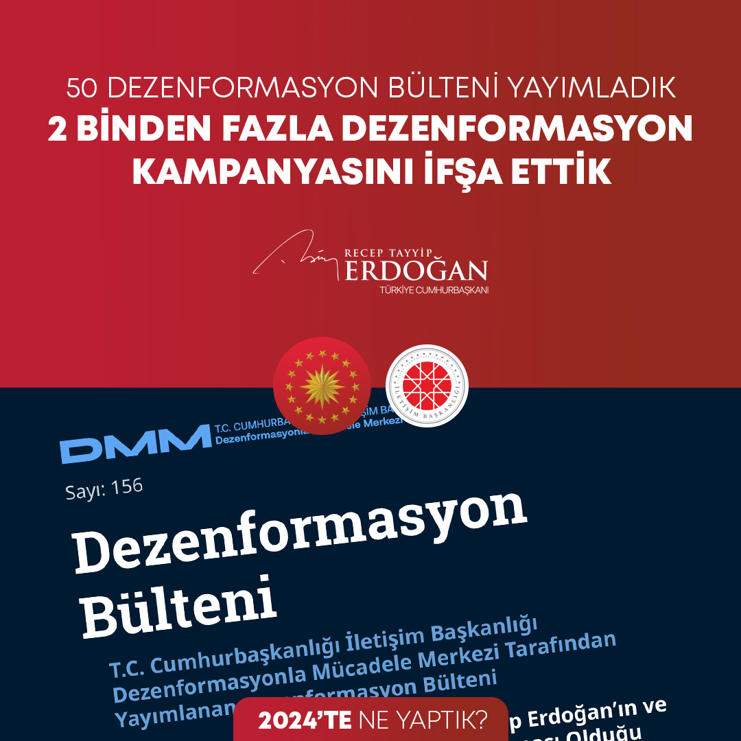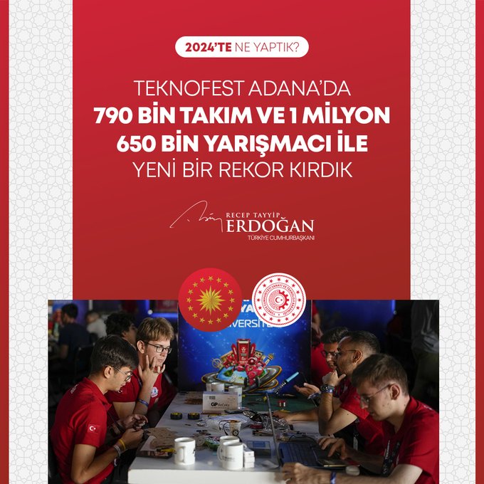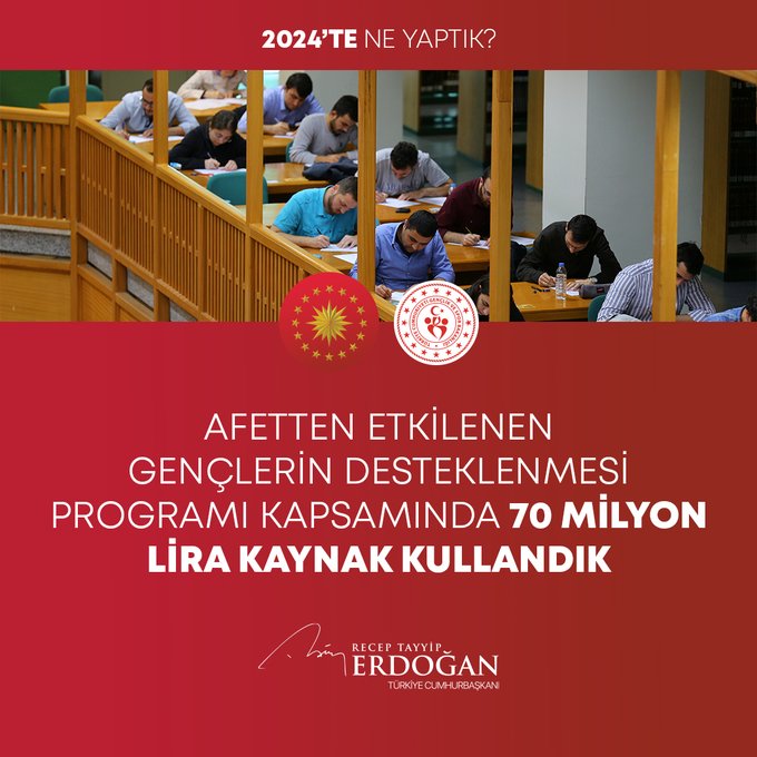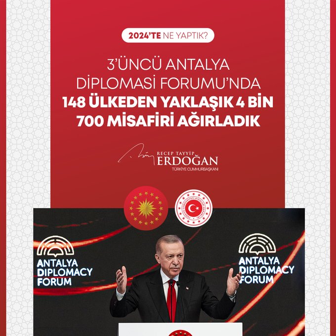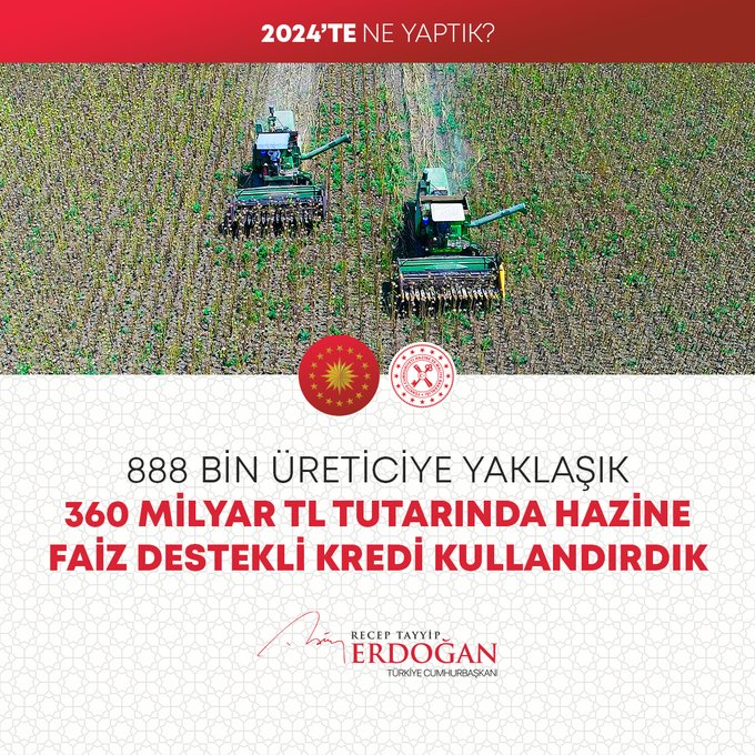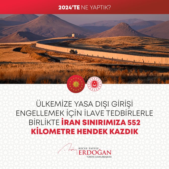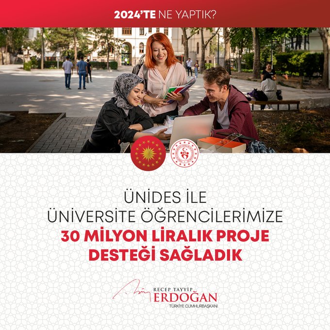 Erdoğan paylaşımında, "Aziz milletimize hizmet yolunda, 2024 yılında da durmadan, dinlenmeden, gece gündüz demeden aşkla çalıştık; ülkemize her alanda çok önemli eserler, hizmetler, projeler, yatırımlar kazandırdık. 2025 yılına girerken bu hizmetleri bir özetleyelim, hatırlayalım..." ifadelerini kullandı.