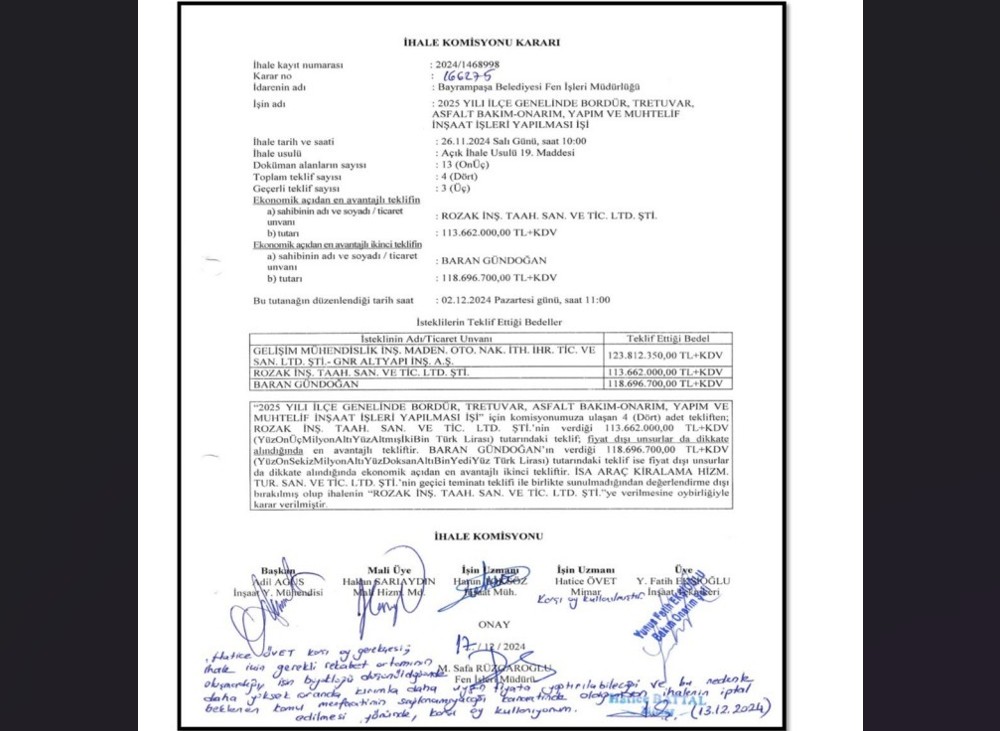 CHP'li Bayrampaşa Belediyesi'ne yönelik başlatılan yolsuzluk ve rüşvet soruşturması kapsamında bir ihalede 40 milyon TL yolsuzluk yapıldığı belirlendi. 2024 yılında yapılan ilçe genelinde Bordür, Tretuvar, Asfalt Bakım-Onarım, Yapım ve Muhtelif İnşaat İşleri Yapım İşi ihalesinin bedelinin yaklaşık 40 milyon TL üzerinde ihale edildiği tespit edildi.