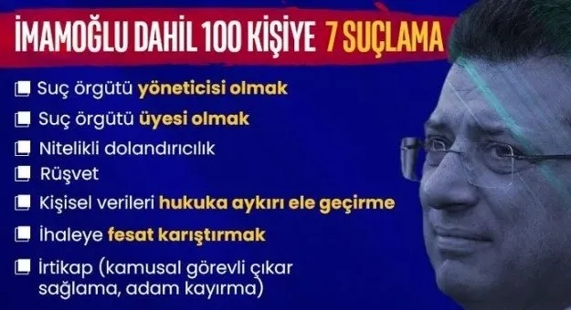 Son dakika haberi: Savcılık, İBB Başkanı Ekrem İmamoğlu'nun başında olduğu 560 milyar liralık yolsuzluk ve kirli para organizasyonunu deşifre etti. İmamoğlu, rüşvetten, kara para aklamaya ve dolandırıcılığa uzanan suçlamaların baş şüphelisi olarak gözaltına alındı.