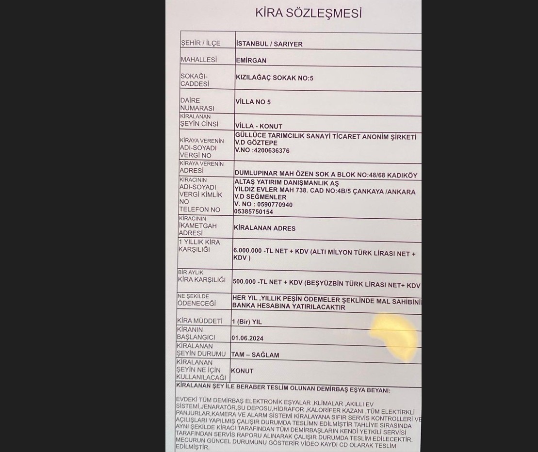Mal beyanında gizlenen ve Boğaz'ın en kıymetli bölgelerinden Reşitpaşa'da yer alan villaların, Ekrem İmamoğlu'nun şirketi olan İmamoğlu İnşaat'ın sahibi olduğu paravan şirket Güllüce Tarımcılık Sanayi Tic. AŞ adına alındığı belirlenmişti.