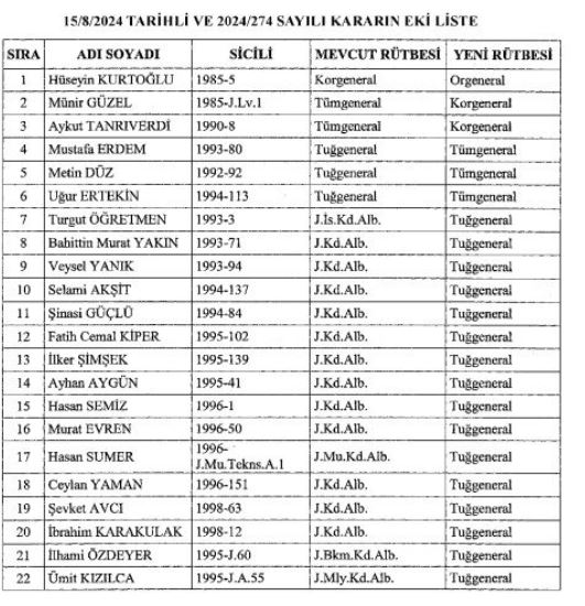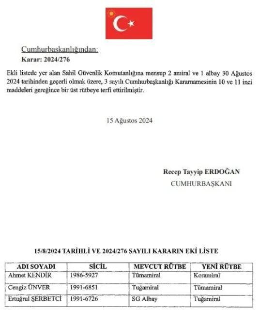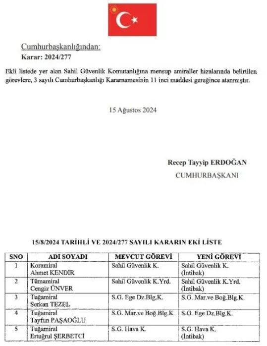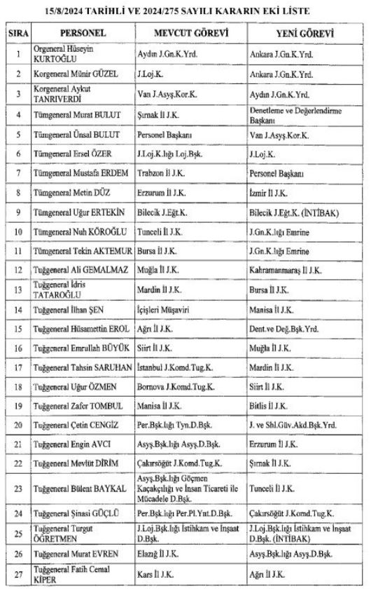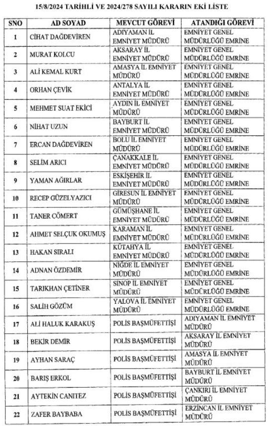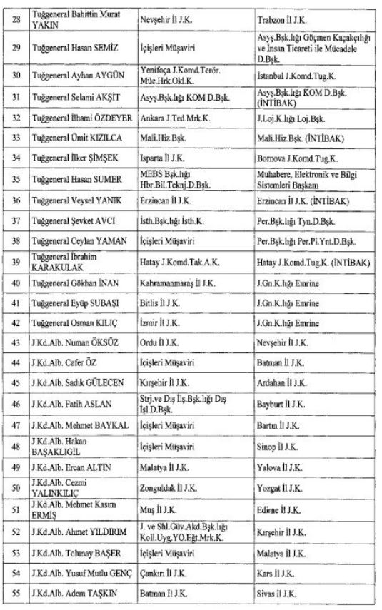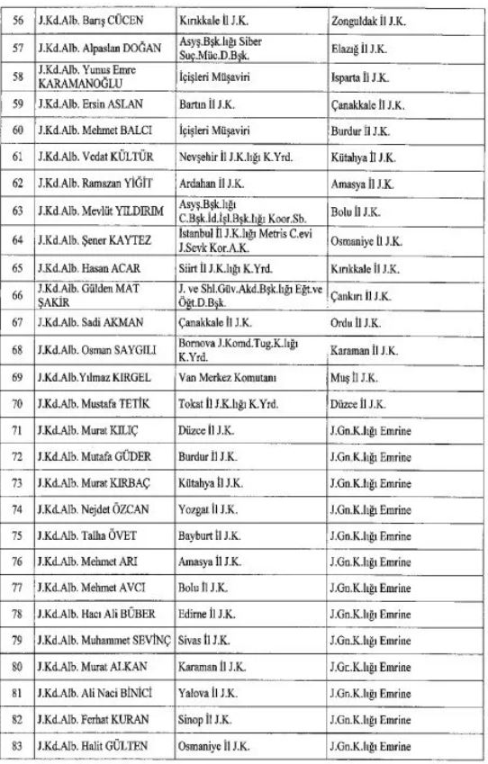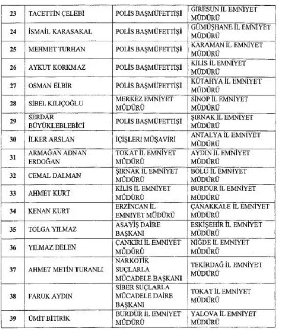 Emniyet Genel Müdürlüğüne Bursa Valisi Mahmut Demirtaş, Jandarma Genel Komutanlığına Orgeneral Ali Çardakcı atandı. Yine pek çok üniversiteye de rektör ataması gerçekleştirildi.